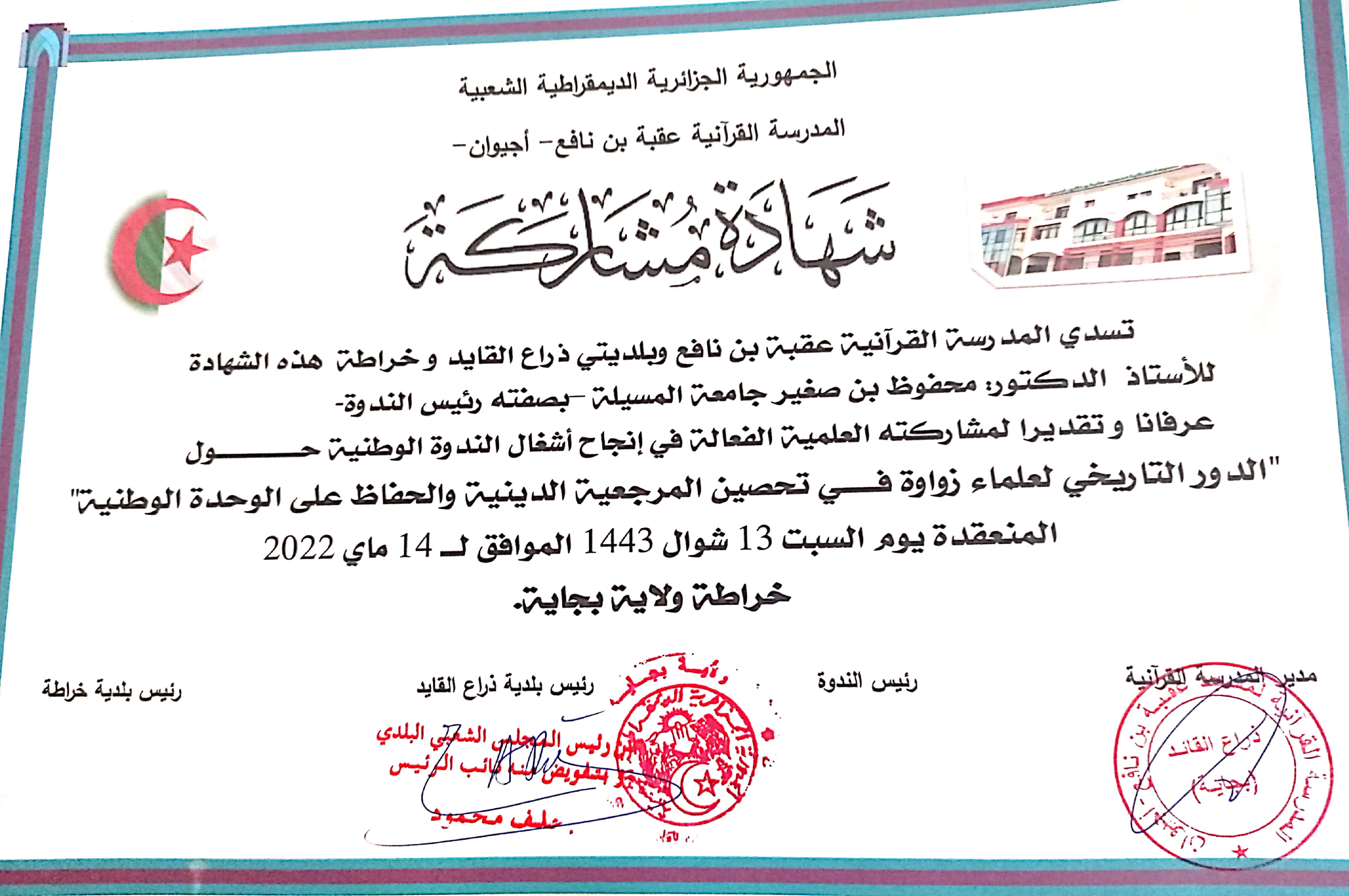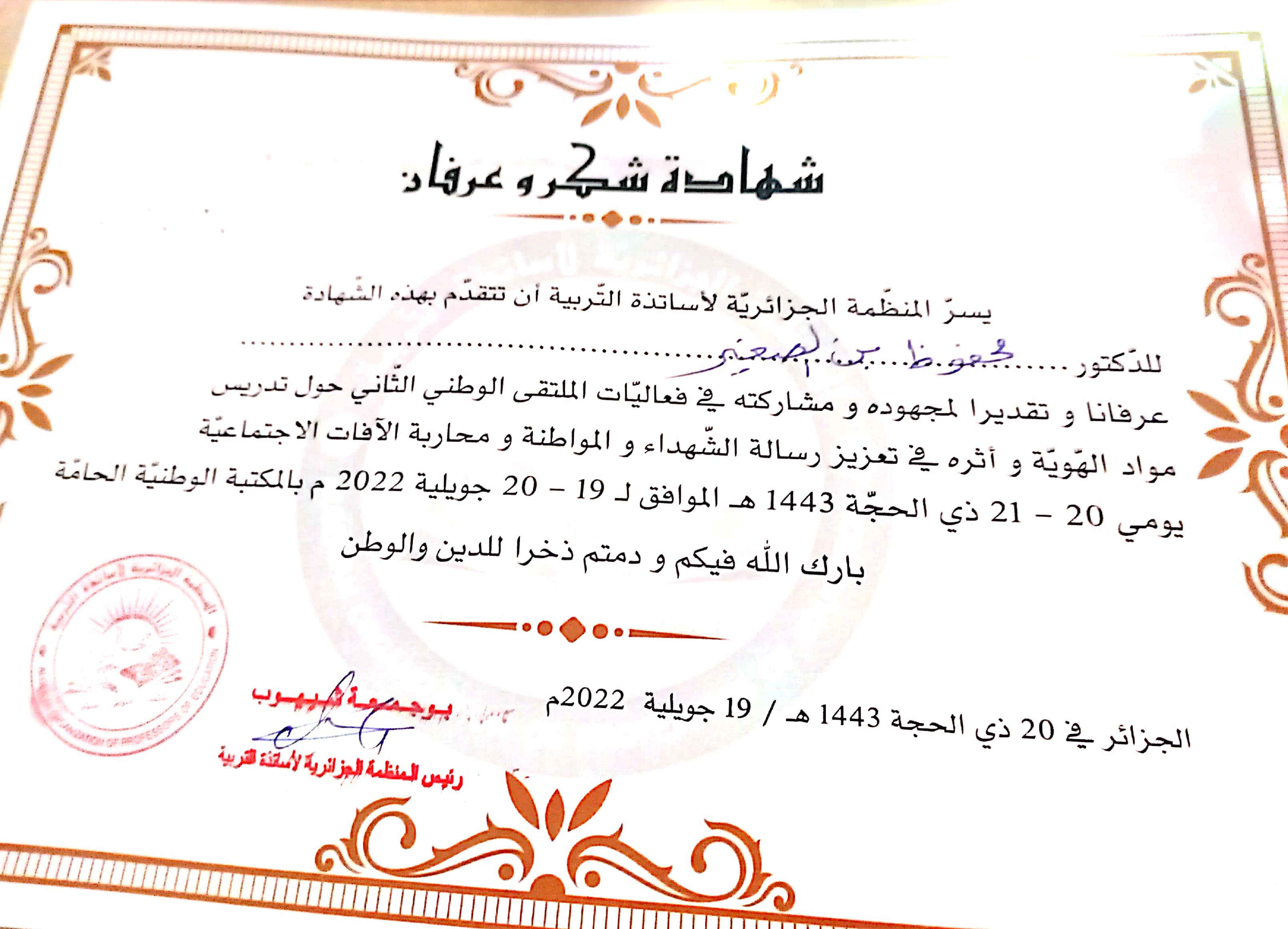 M. MAHFOUD Benseghir, (2022), "دور المرجعية الدينية في تحصين الشباب وتعزيز مفهوم المواطنة", [national] تدريس مواد الهوية ودورها في تعزيز رسالة الشهداء والمواطنة ومحاربة الآفات الاجتماعية , الجزائر