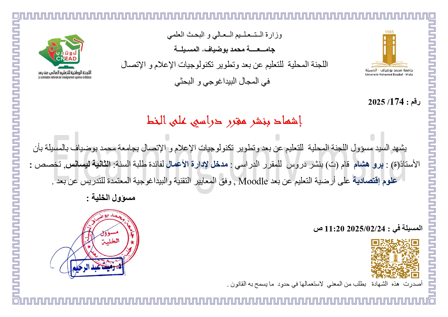 M. BERROU Hichem, (2025-02-24), "مدخل إدارة الاعمال", [national] جامعة المسيلة