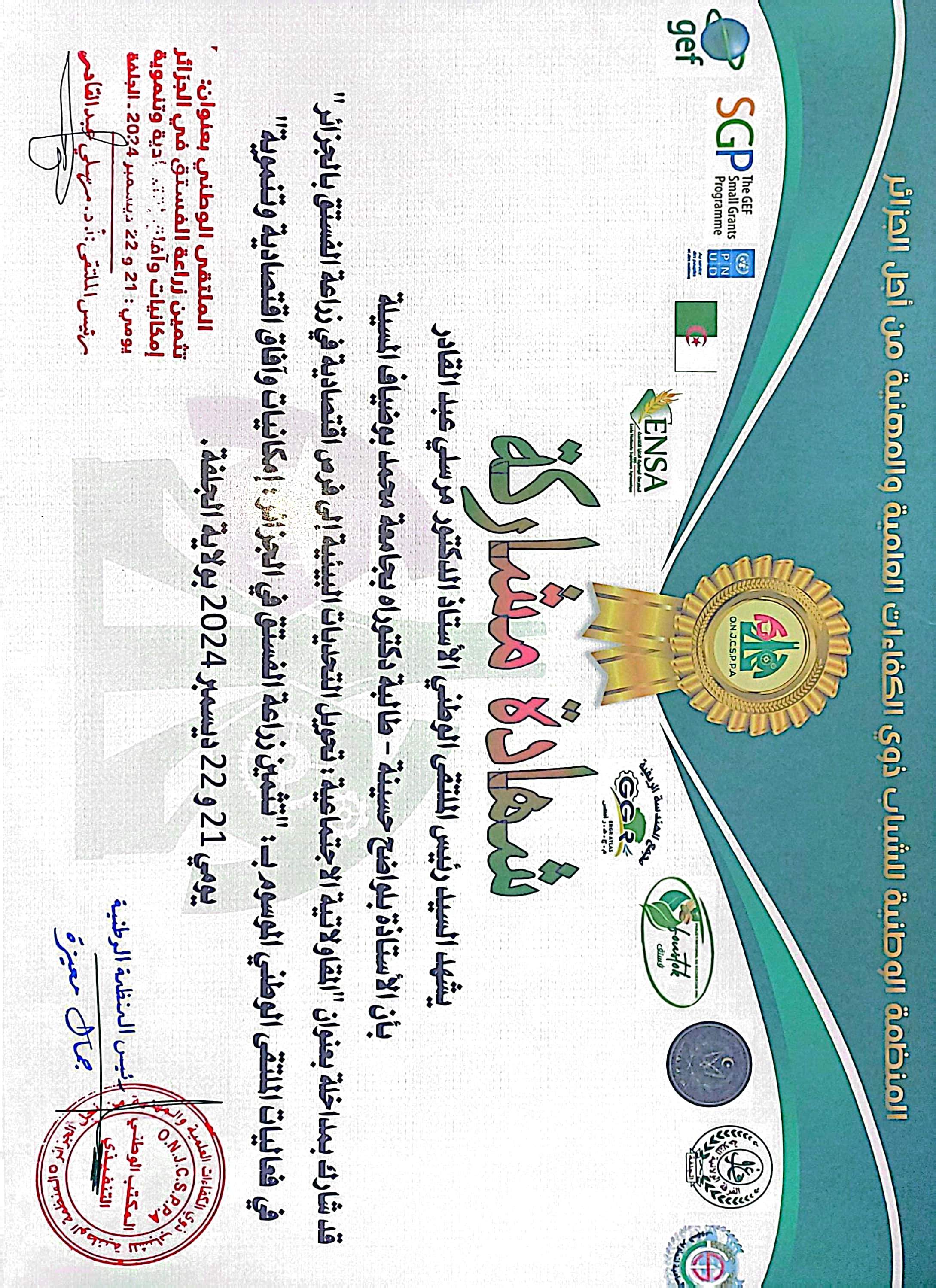 M. NADJEH Makhlouf, (2024-12-22), "المقاولاتية الاجتماعية : تحويل التحديات البيئية الى فرص اقتصادية في زراعة الفستق في الجزائر", [national] تثمين زراعة الفستق في الجزائر : امكانيات وافاق اقتصاديةو تنموية , المنظمة الوطنية للكفاءات العلمية والمهنية من اجل الجزائر الجلفة