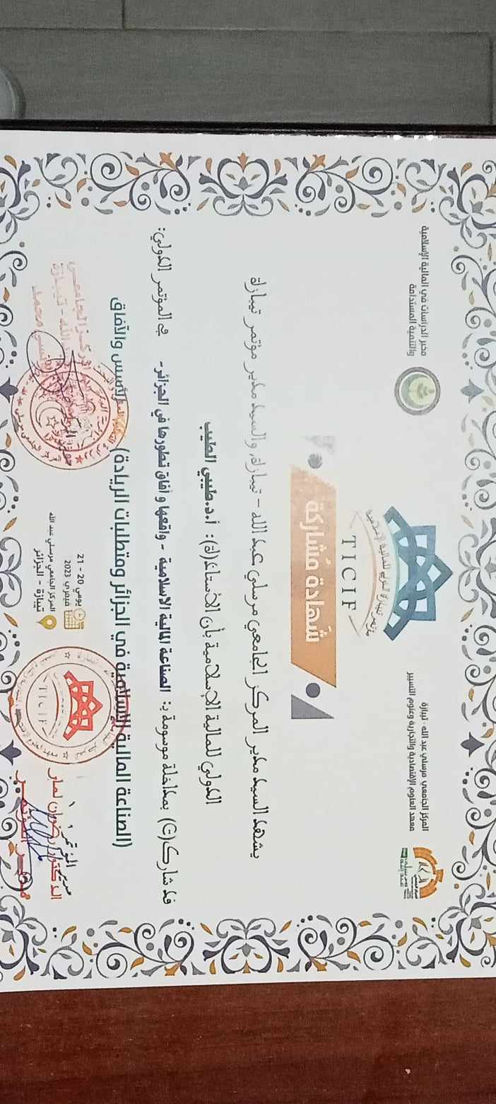 M. TAIBI Taieb, (2023-02-20), "الصناعة المالية الإسلامية واقعها وآفاق تطورها في الجزائر", [international] الصناعة المالية الإسلامية واقعها وآفاق تطورها في الجزائر , تيبازة