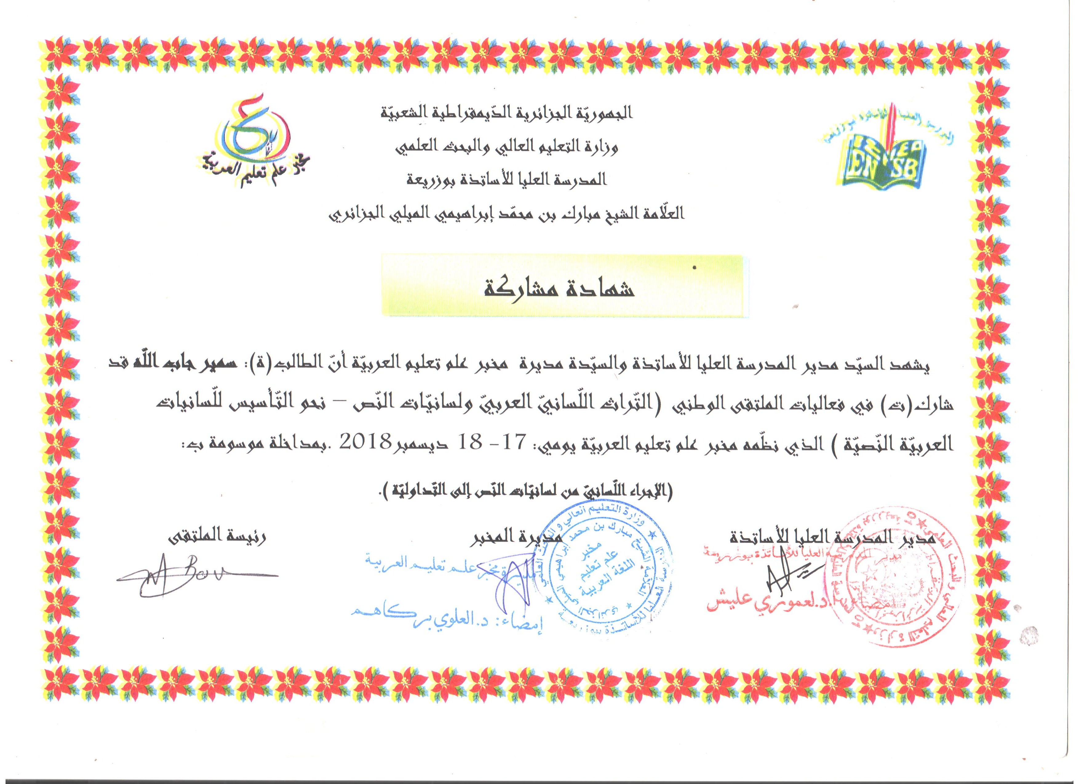 M. DJABALLAH Samir, (2018-12-17), "الإجراء اللساني من لسانيات النص إلى التداولية", [national] التراث اللساني العربي ولسانيات النص-نحو التأسيس للسانيات العربية النصية- , -المدرسة العليا للأساتذة -بوزريعة