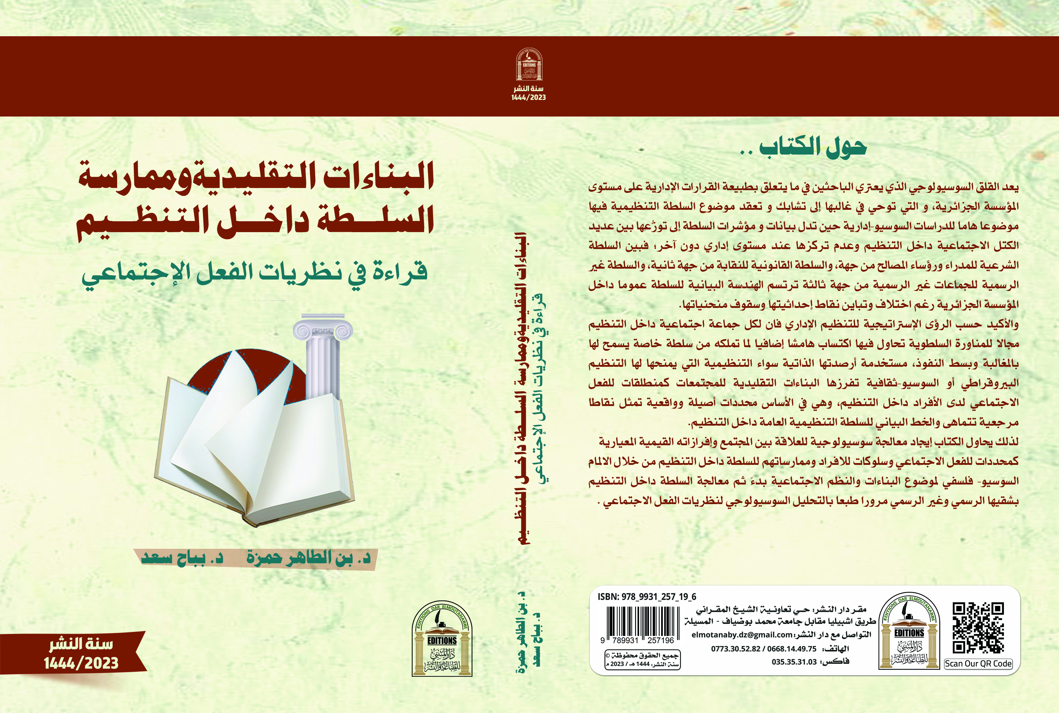 M. BENTAHAR Hamza, (2023-01-01), "البناءات التقليدية والسلطة داخل التننظيم(قراءة في نظريات الفعل الاجتماعي)", [national] , دار المتنبي للطباعة والنشر الجزائر