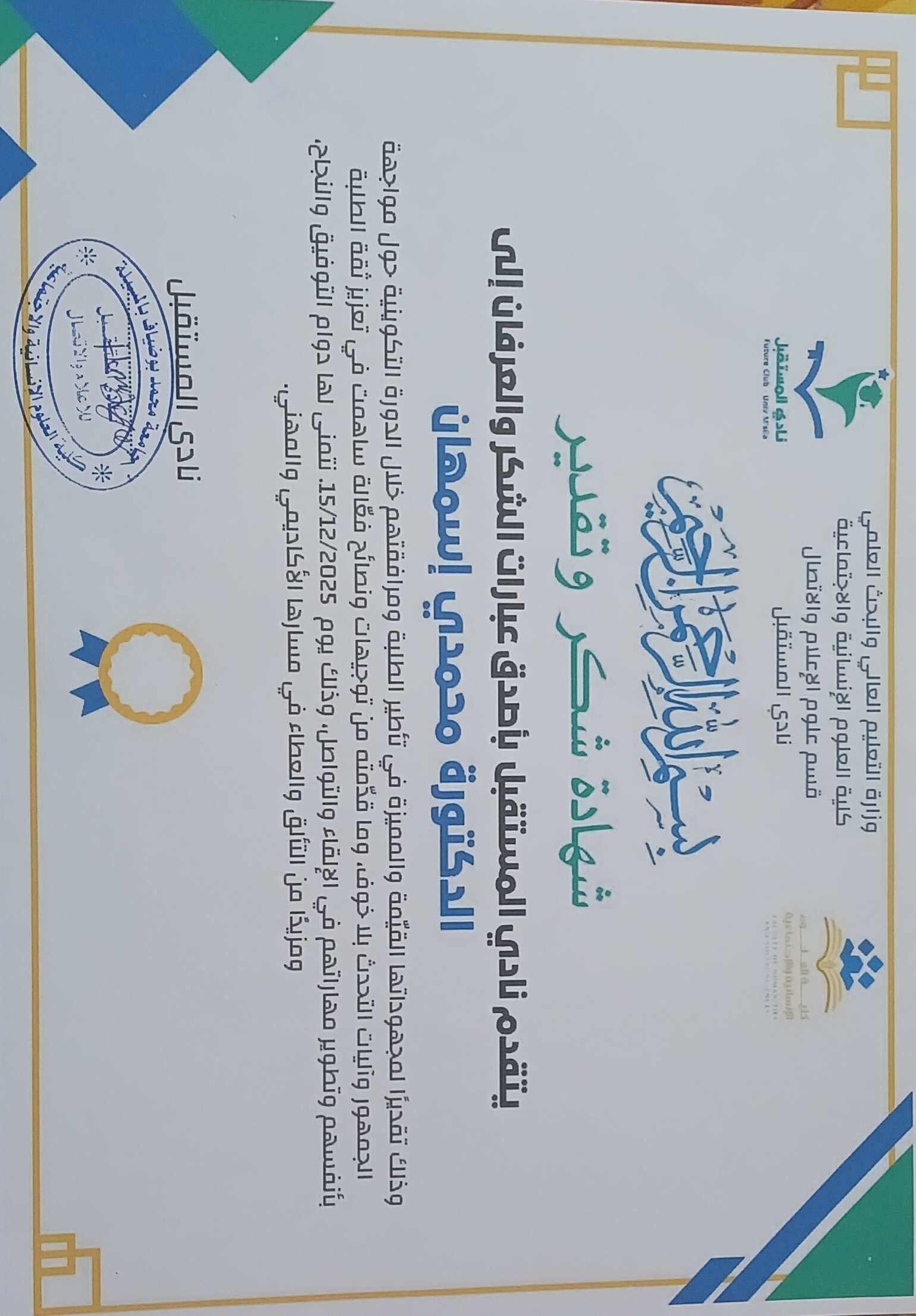 M. MHAMDI Ismahane, (2024-07-28), "شهادة التدريب الدولي", [international] شهادة دوليىة تدريب مدربين , تونس