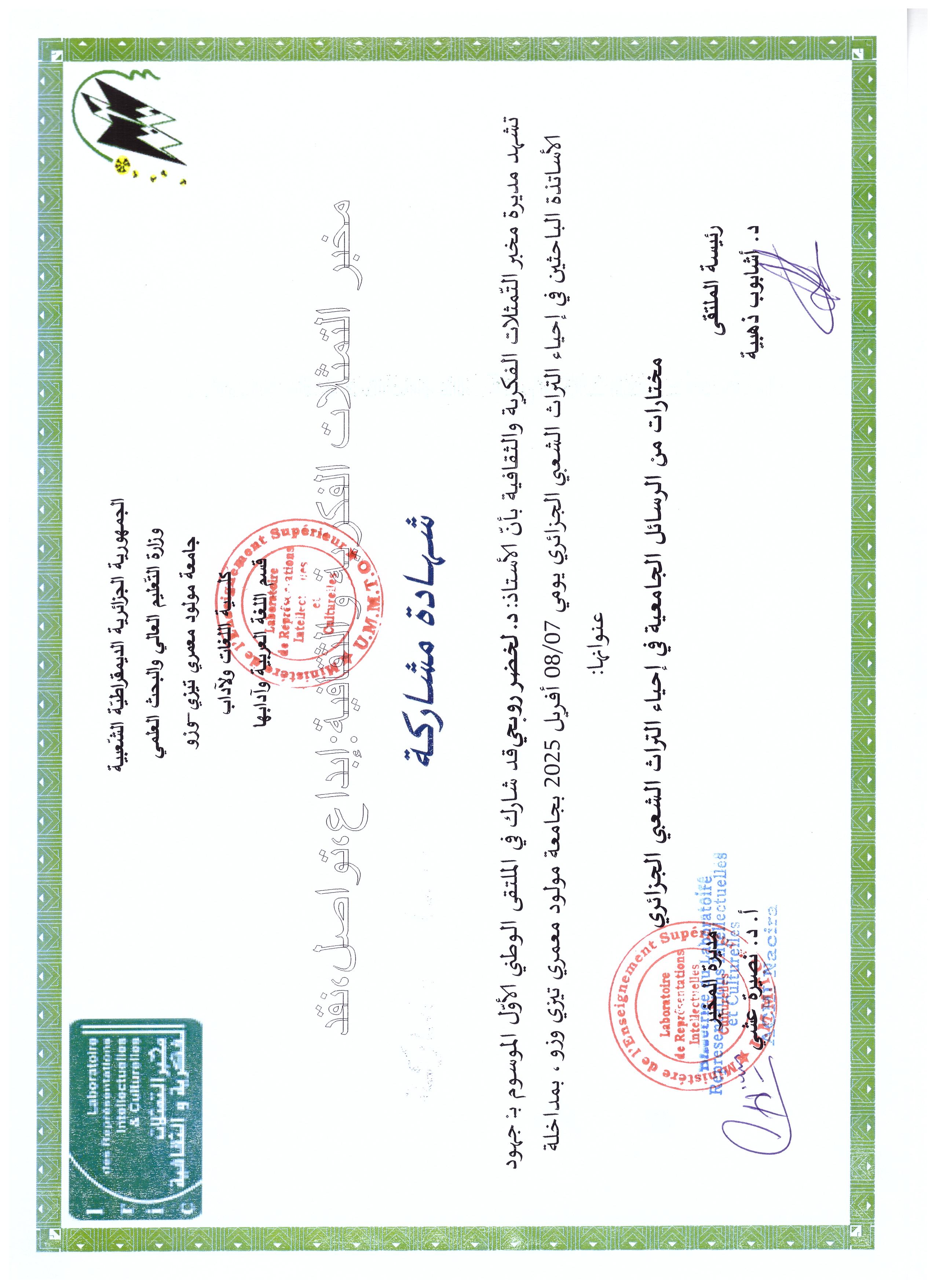 M. ROUBHI Lakhdar, (2025-04-08), "مختارات من الرسائل الجامعية في إحياء التراث العربي الجزائري", [national] جهود الأساتذة الباحثين في إحياء التراث العربي الجزائري , تيزي وزو