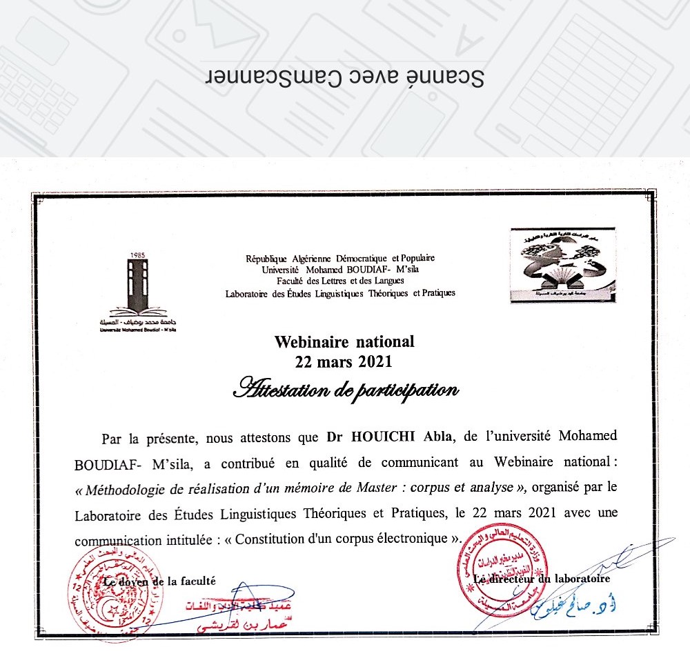 M. HOUICHI Abla, (2021), "Constitution d'un corpus électronique", [national] Méthodologie de réalisation d'un mémoire de Master: corpus et analyse , université Mohamed Boudiaf M'sila
