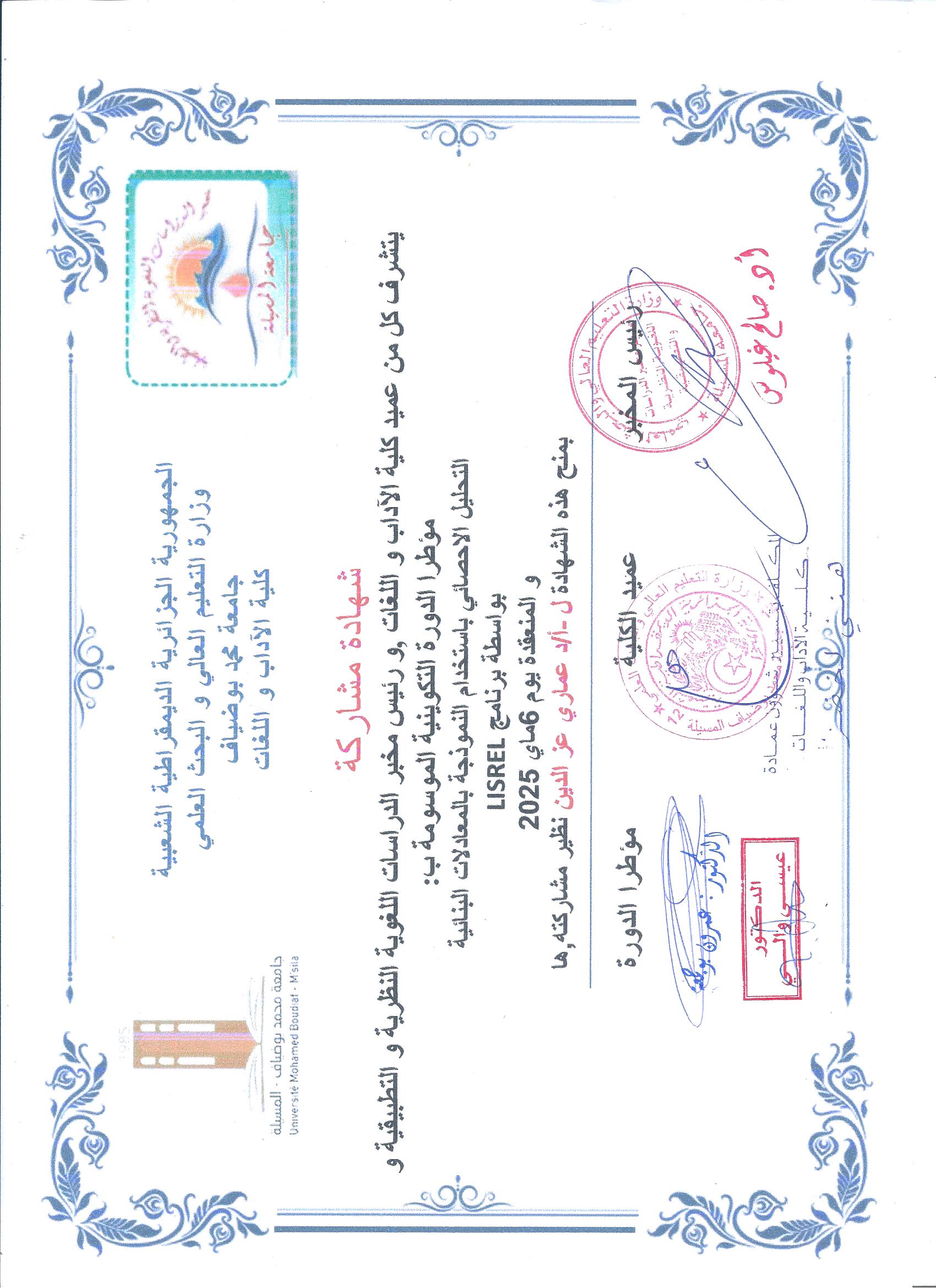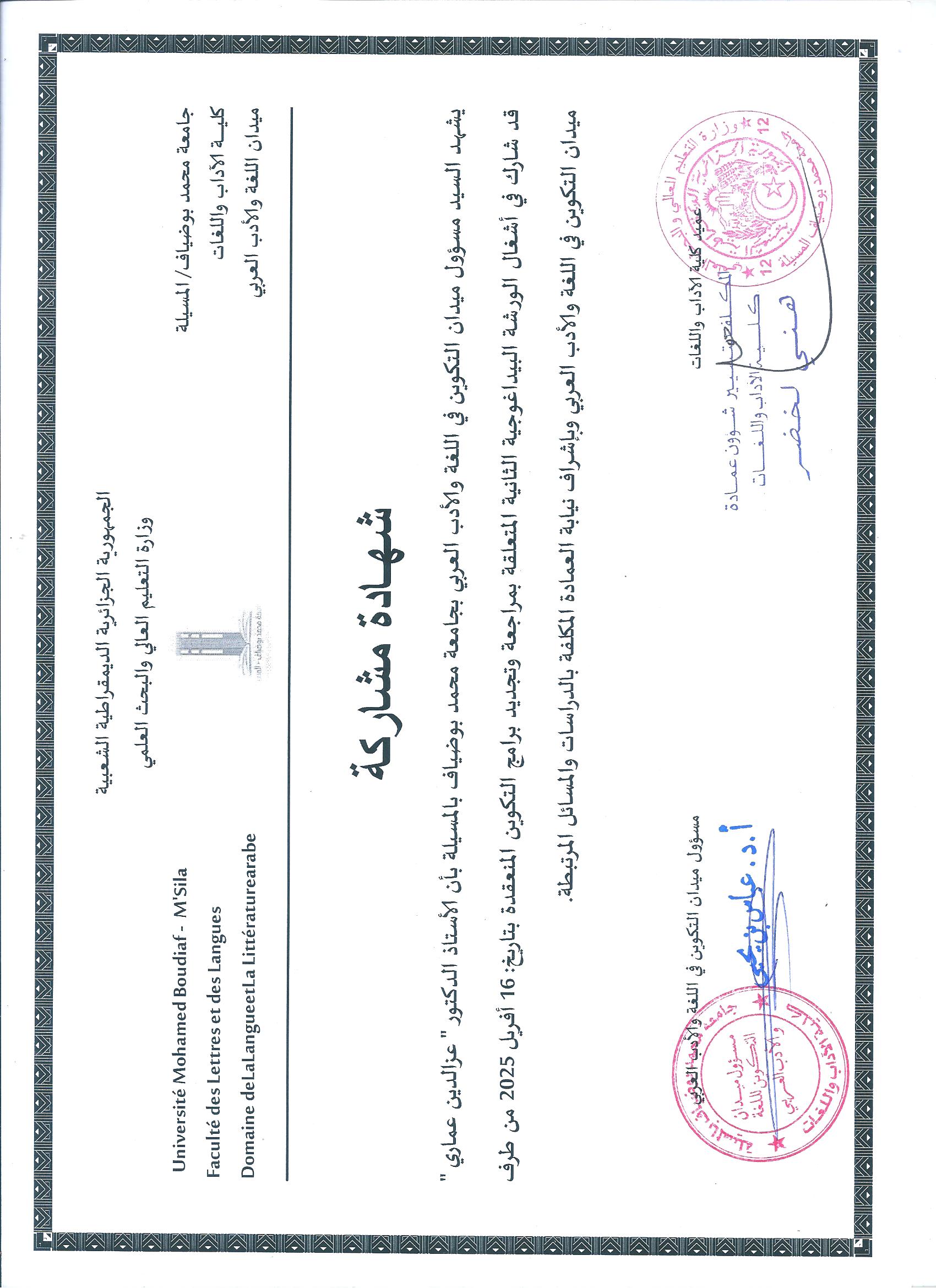 M. AMMARI Azzeddine, (2022), "كيف نرتقي بالعربية", [national] مشاركة احتفاء باللغة العربية . الاتحاد الوطني , جامعة المسيلة