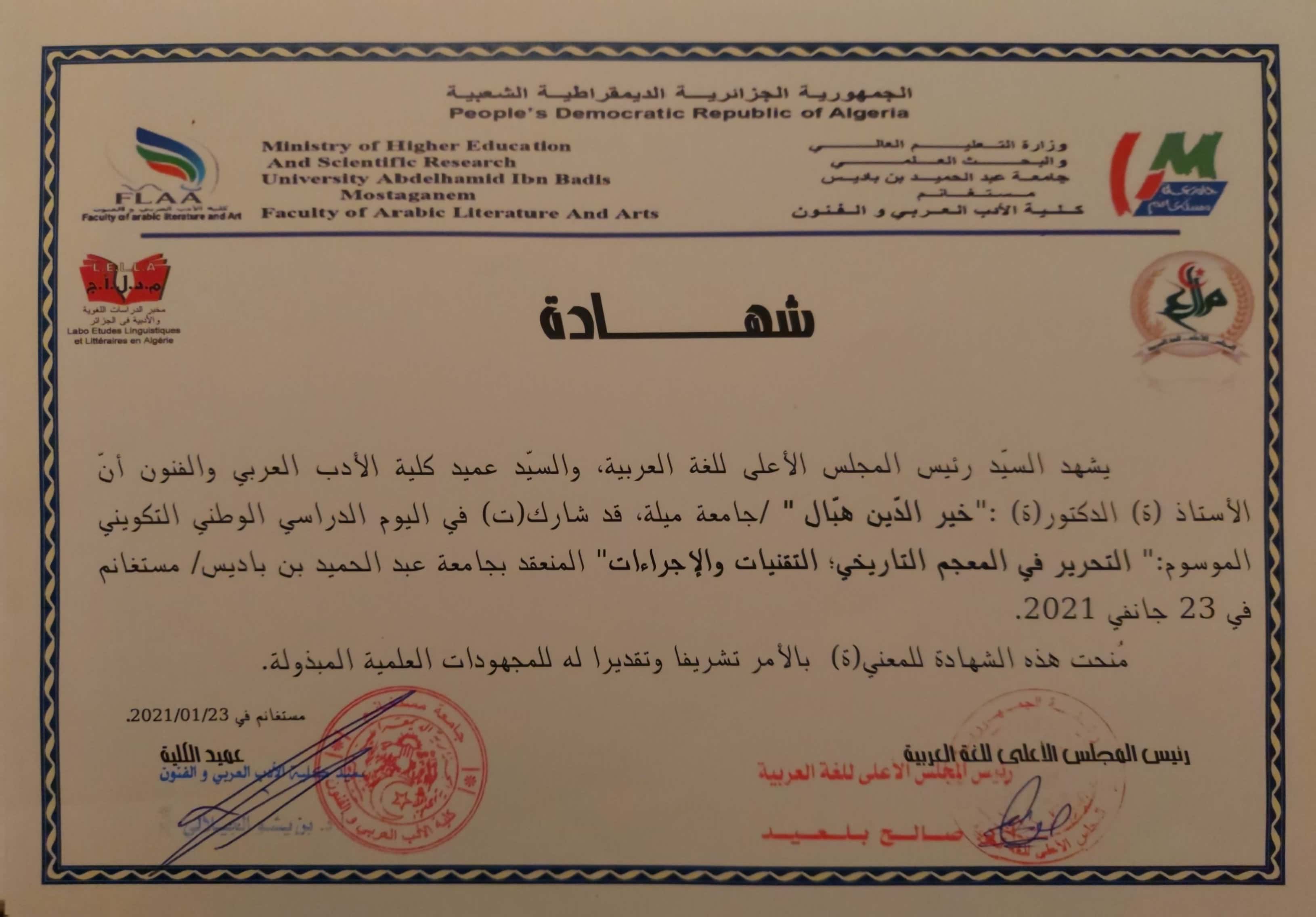 M. KHEIREDDINE Hebal, (2021), "أبجديّات الصناعة المعجميّة", [national] "التّحرير في المعجم التّاريخي "التقنيّات والإجراءات , -جاامعة عبد الحميد بن باديس -مستغانم