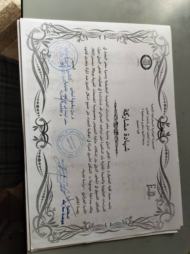 M. BRAHIM LADOUANI Leila, (2022), "التمكين الأسري للمرأة في اتفاقية القضاء على جميع أشكال التمييز ضد المرأة وتعديل قانون الأسرة الجزائري -دراسة نقدية", [international] التمكين النسوي في المنظور الدولي بين إشكالات عالمية النصوص وخصوصية المجتمعات العربية , قسنطينة 1