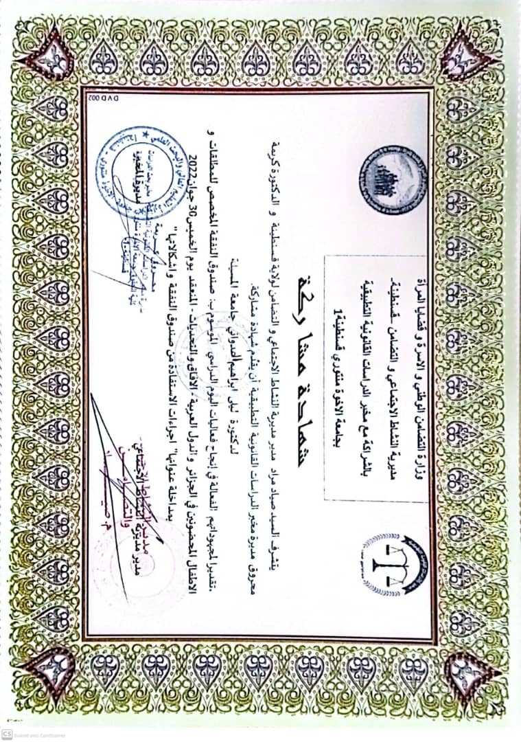 M. BRAHIM LADOUANI Leila, (2022-06-30), "اجراءات الاستفادة من صندوق النفقة وإشكالاتها", [national] صندوق النفقة المخصص للمطلقات والأطفال المحضونين في الجزائر والدول العربية الآفاق والتحديات , وزارة التضامن الوطني وقضايا المرأة مديرية النشاط الاجتماعي والتضامن- قسنطينة