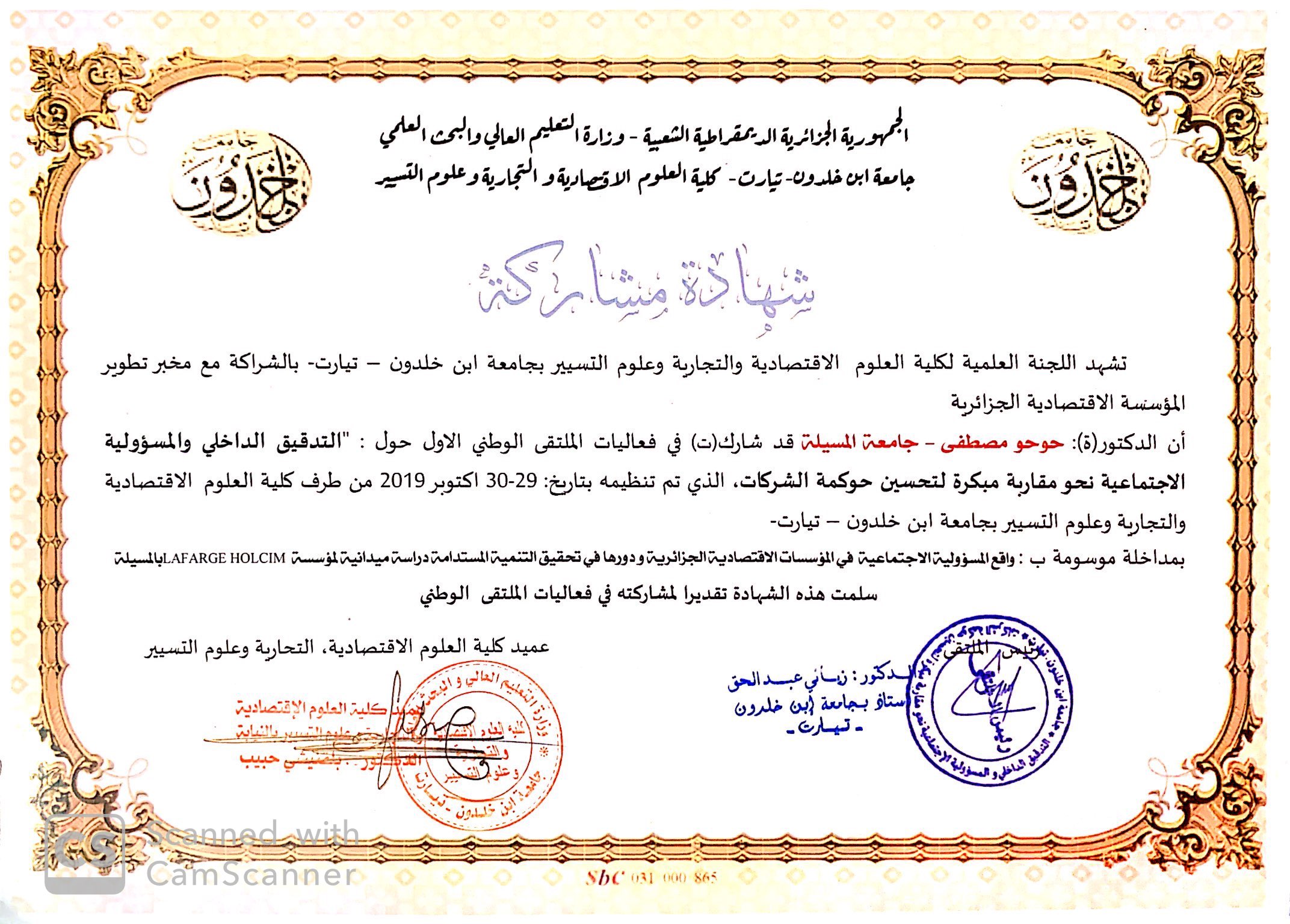 M. HOUHOU Mustapha, (2019), "واقع المسؤولية الاجتماعية في المؤسسات الاقتصادية الجزائرية ودورها في تحقيق التنمية المستدامة دراسة ميدانية لمؤسسة LAFARGE HOLCIM بالمسيلة", [national] التدقيق الداخلي والمسؤولية الاجتماعية نحو مقاربة مبكرة لتحسين حوكمة الشركات , جامعة تيارت