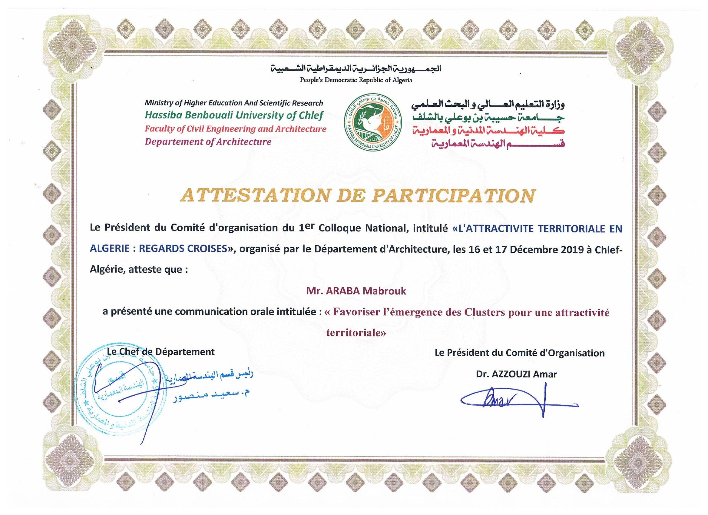 [international]L'attractivité des Territoires, University of Chlef