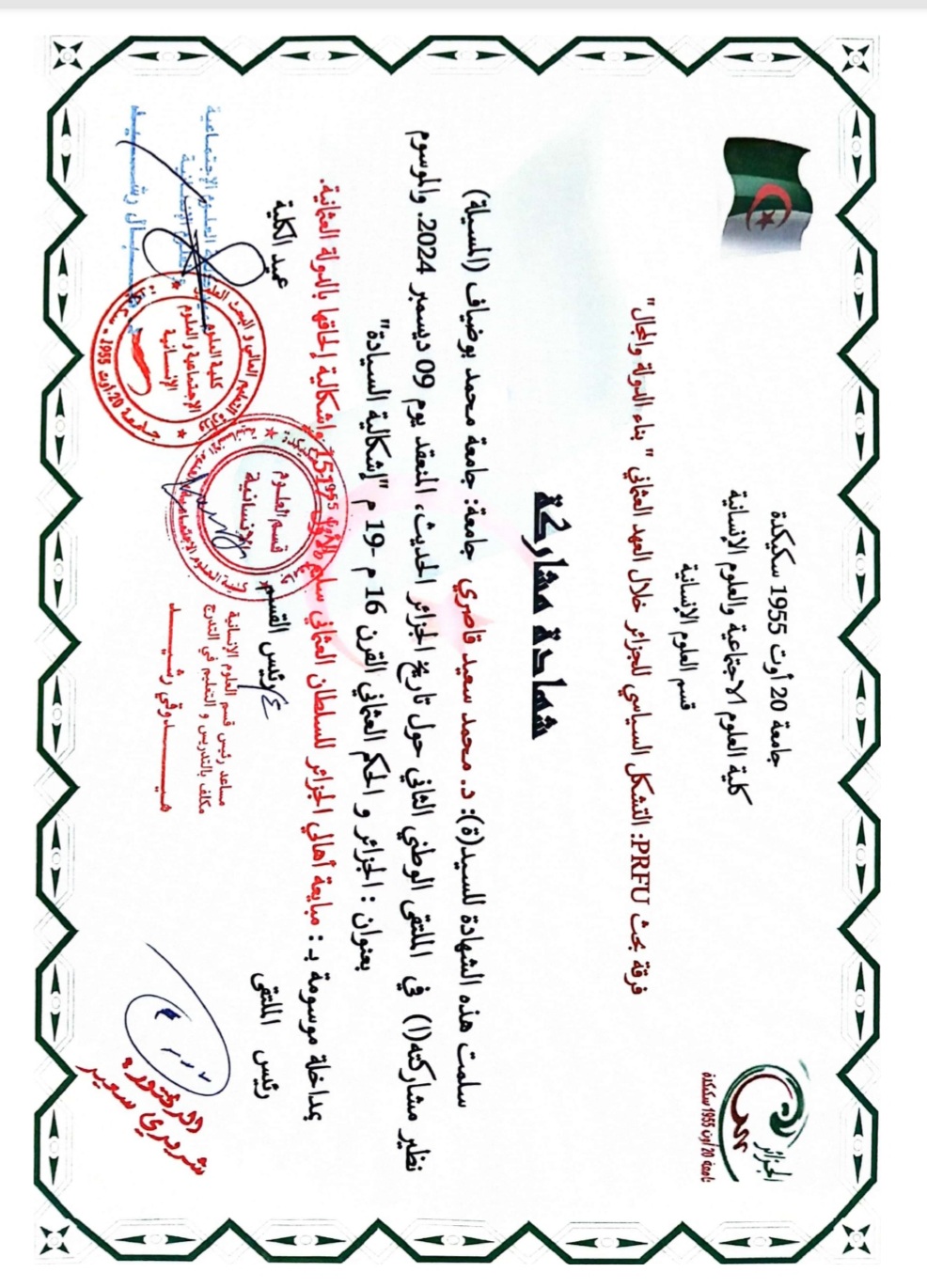 M. KASRI Mohamed said, (2024-05-08), "حرب الإبادة الفرنسية في الجزائر 8 ماي 45 أنموذجا", [national] تظاهرة اليوم الوطني للذاكرة , جامعة محمد بوضياف المسيلة