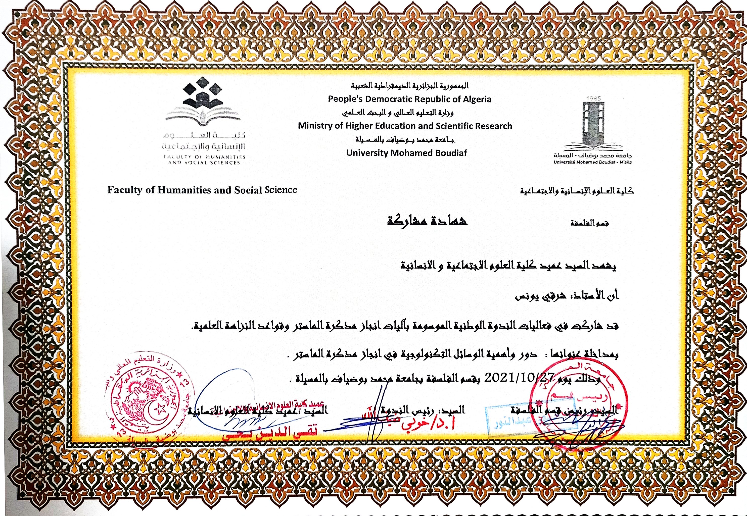 M. .CHERGUI Younes, (2021), "آليات إنجاز مذكرة الماستر وقواعد النزاهة", [national] دور وأهمية الوسائل التكنولوجية في إنجاز مذكرة الماستر , جامعة المسيلة