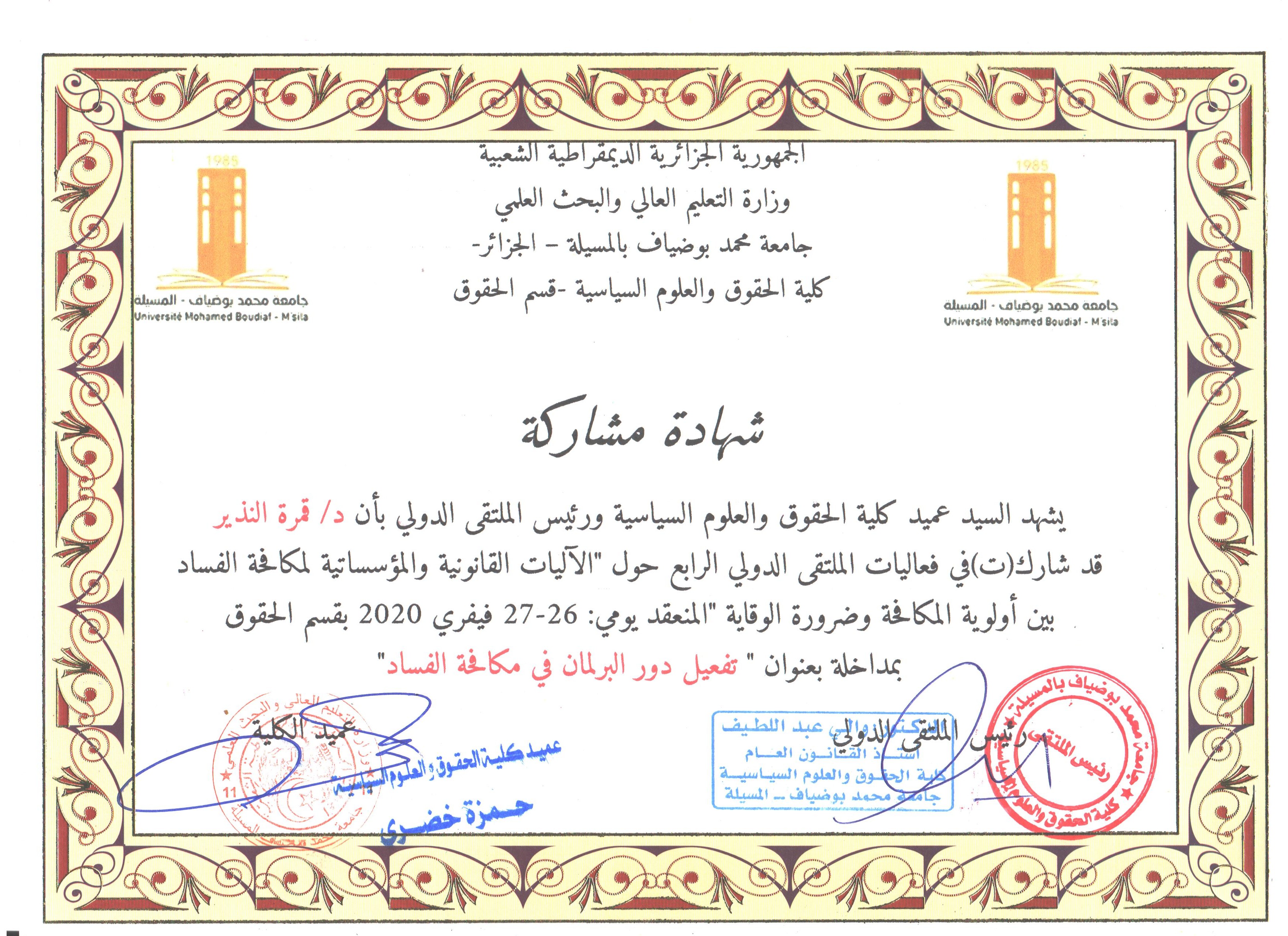 M. NADIR Guemra, (2020), "تفعيل دور البرلمان في مكافحة الفساد", [international] الاليات القانونية والمؤسساتية لمكافحة الفساد , جامعة المسيلة