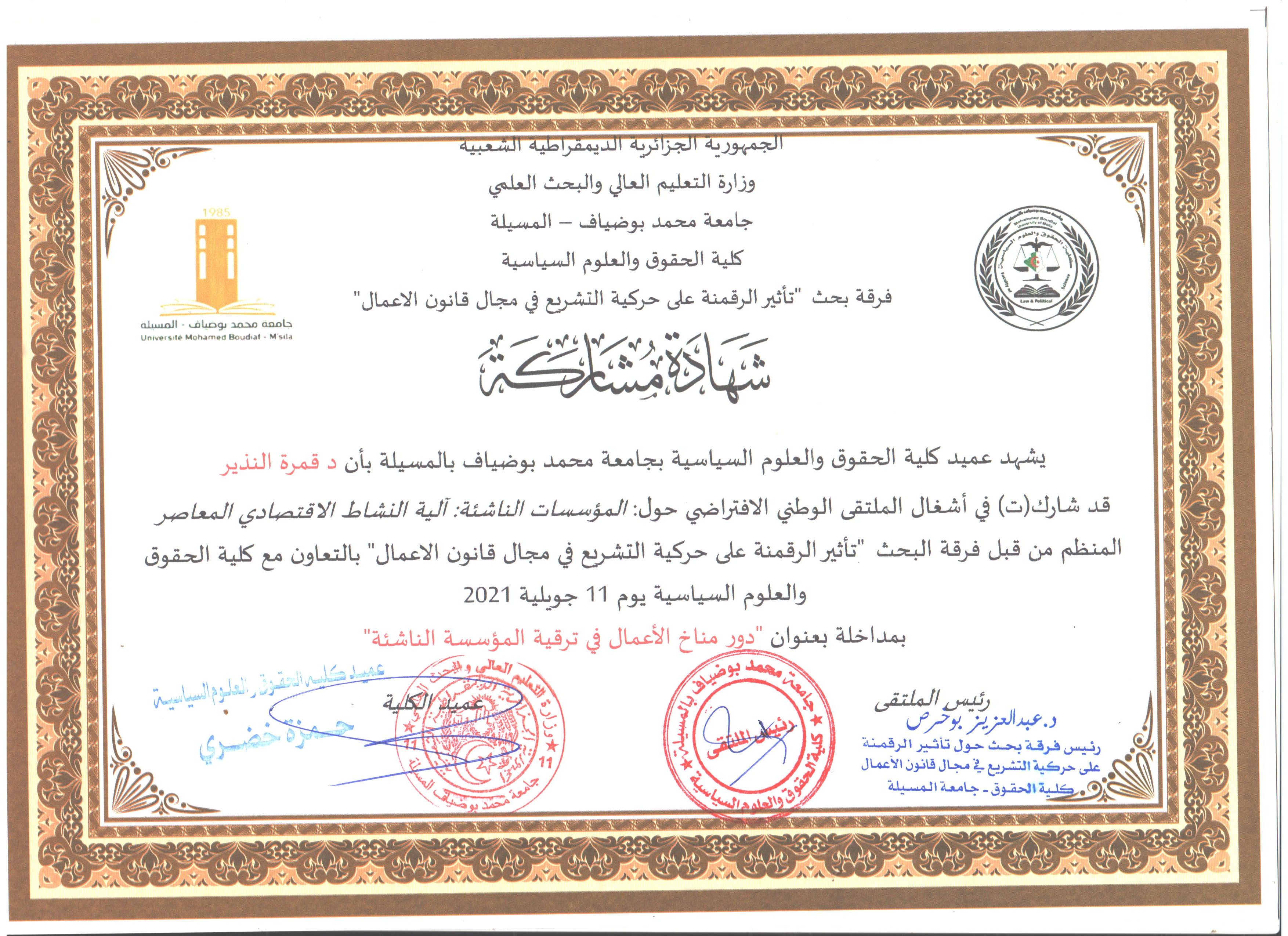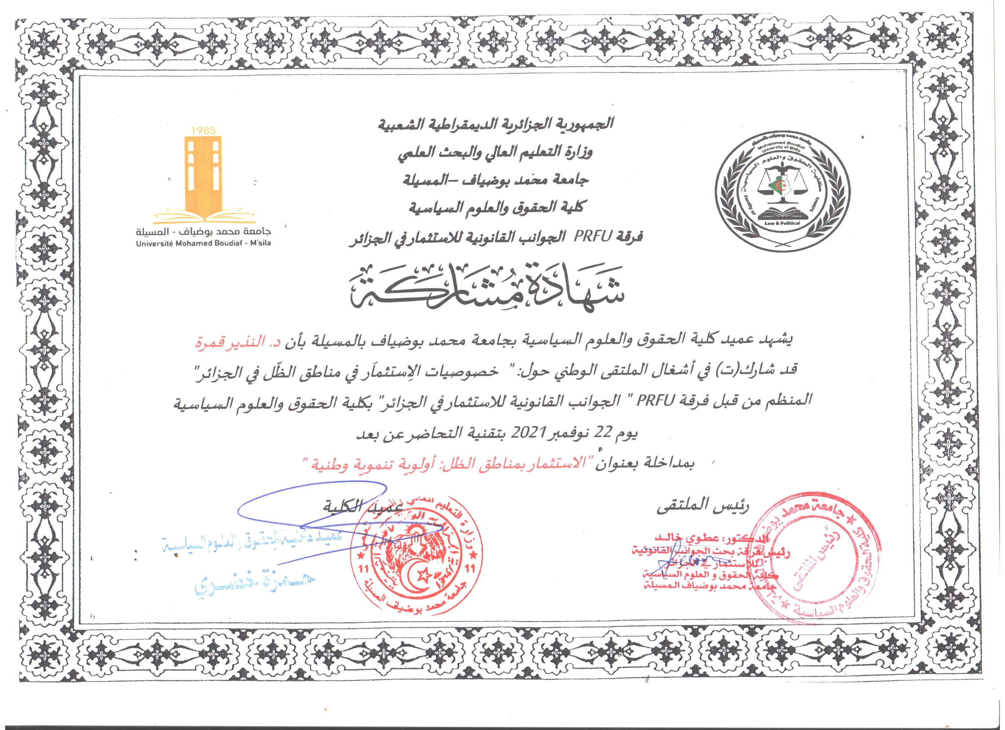 M. NADIR Guemra, (2021), "الاستثمار بمناطق الظل: أولوية تنموية وطنية", [national] , جامعة المسيلة كلية الحقوق
