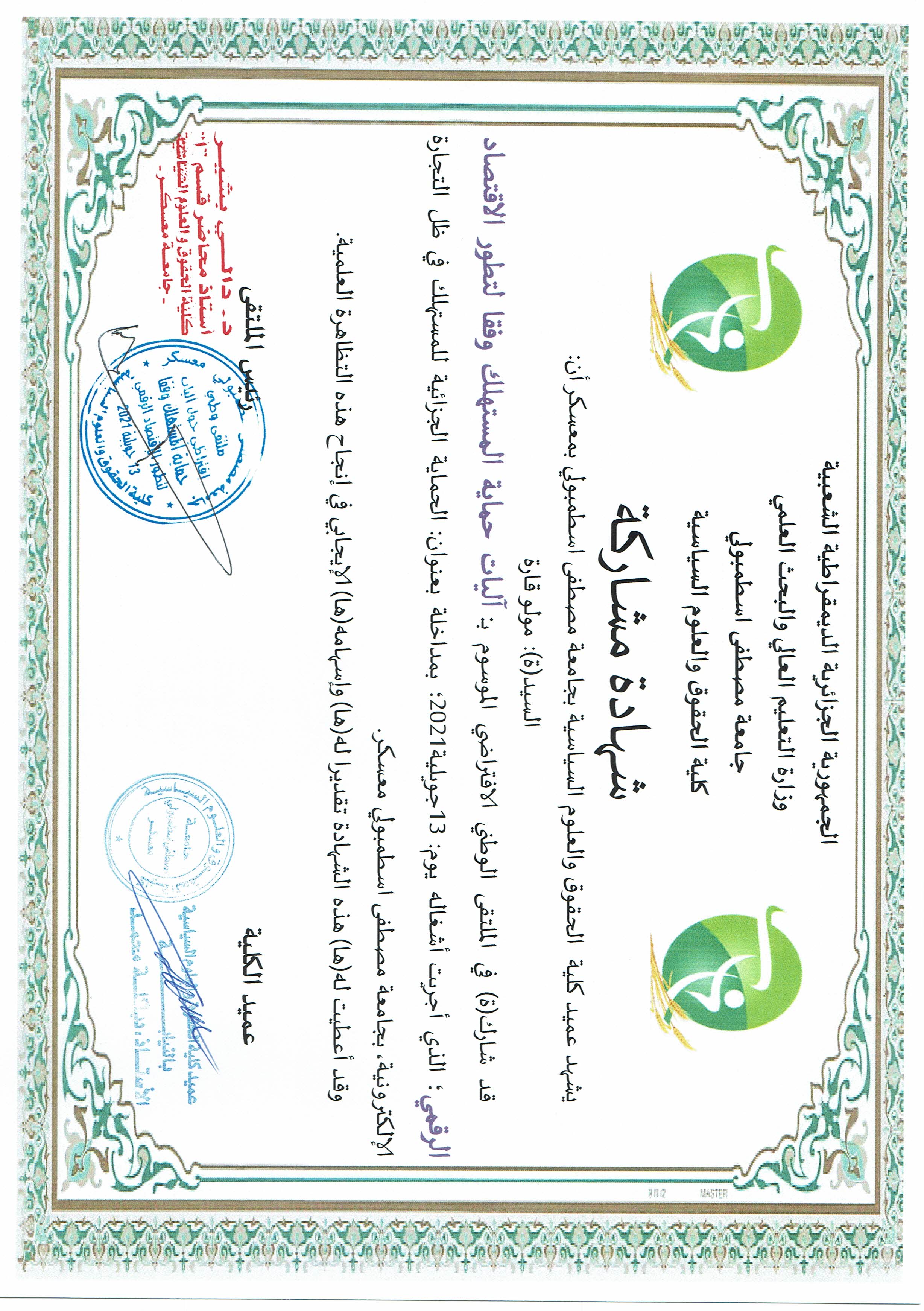 M. MOULOUD Kara, (2021-07-13), "آليات حماية المستهلك وفقا لتطور الاقتصاد الرقمي", [national] الحماية الجزائية للمستهلك في ظل التجارة الالكترونية , كلية الحقوق جامعة معسكر