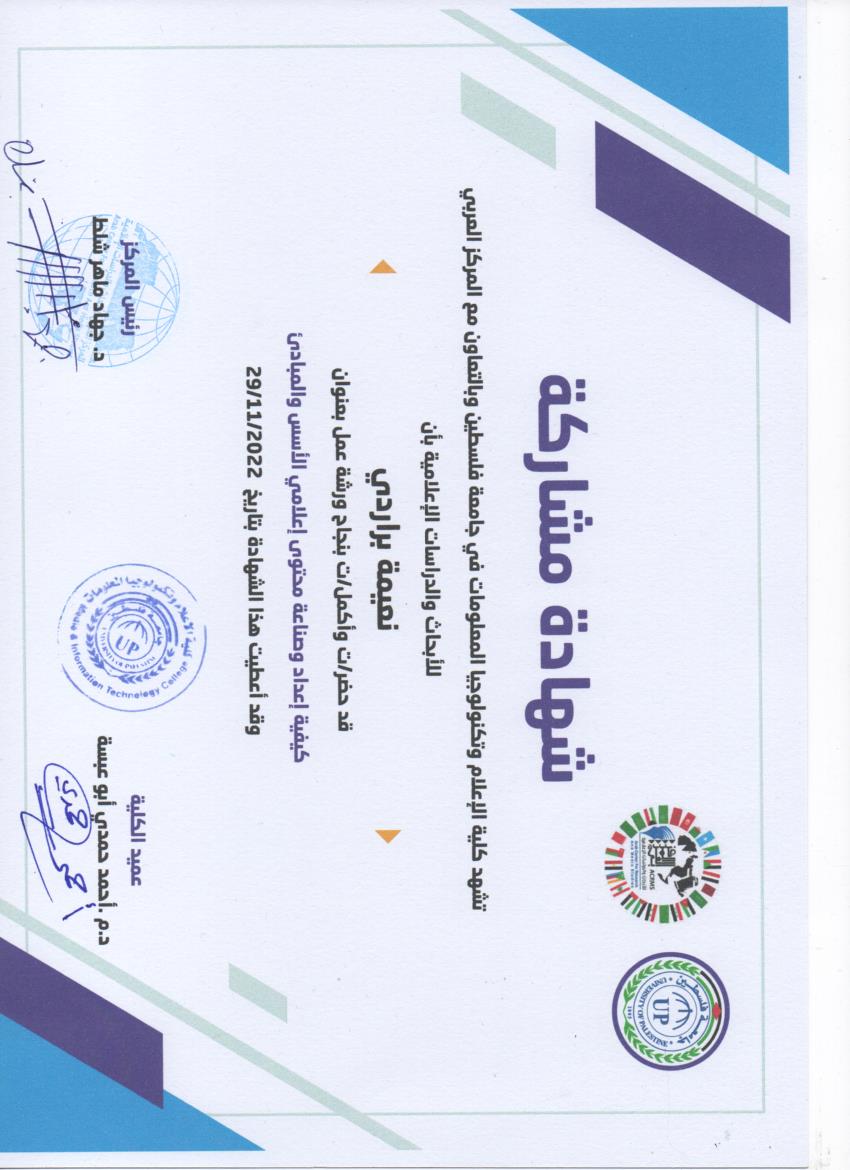 M. BERARDI Naima, (2023-11-02), "الصحافة في التشريعات والقوانين الدولية", [international] الورشة التدريبية لمنصة الجزيرة للتعليم الإلكتروني , منصة الجزيرة للتعليم الالكتروني