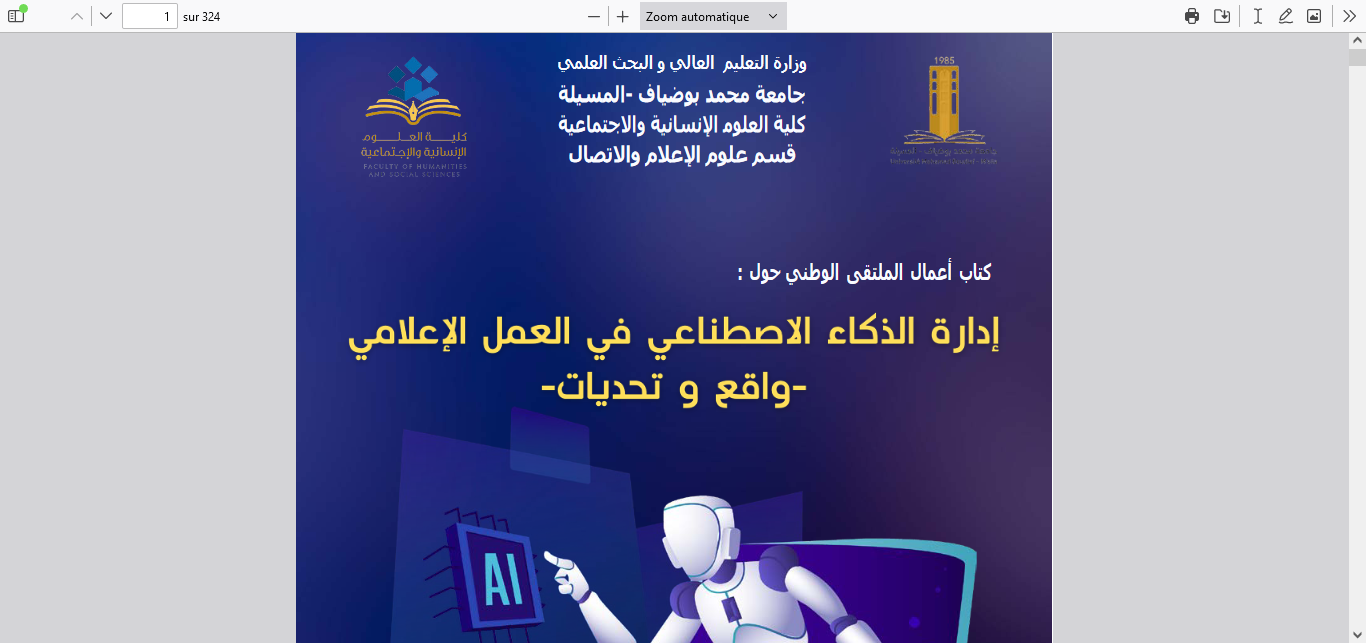 M. BERARDI Naima, (2024-01-05), "الاعلام في عصر الذكاء الاصطناعي والتحديات الأخلاقية", [national] إدارة الذكاء الاصطناعي في العمل الاعلامي - واقع وتحديات , سلسلة الكتب الاكاديمية لكلية العلوم الانسانية والاجتماعية