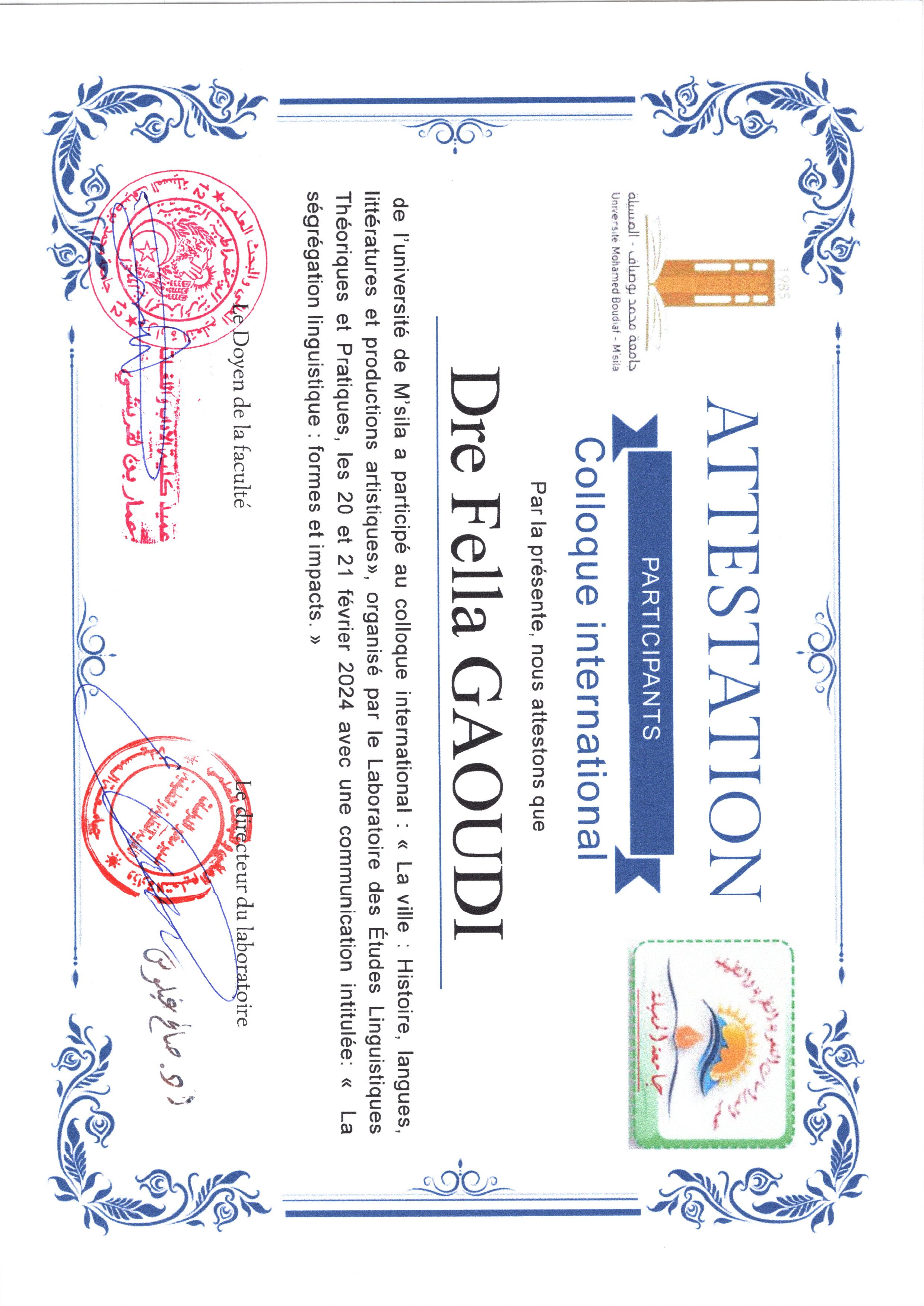 [international]La dimension culturelle en didactique, en littérature et en sciences du langage, université msila