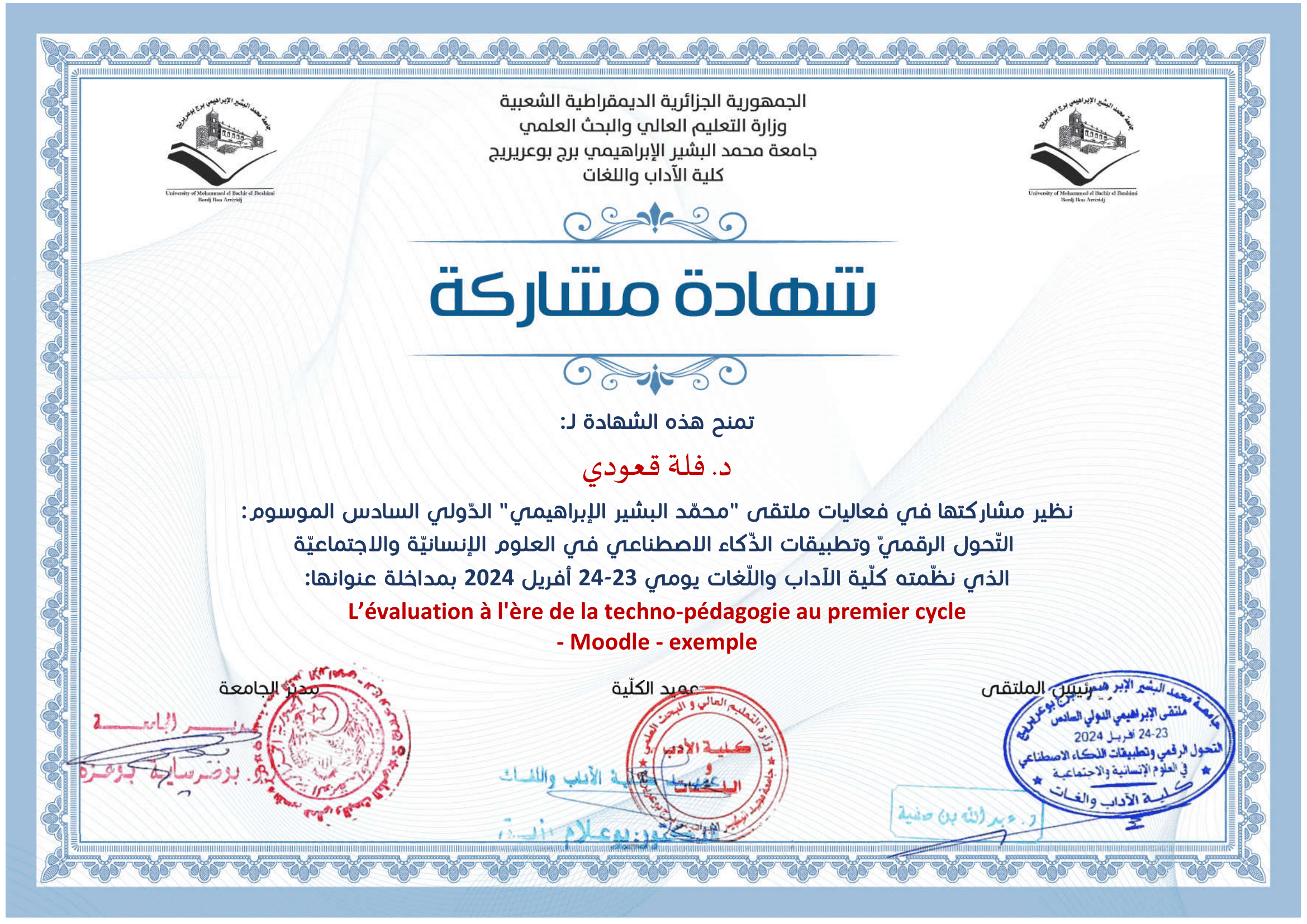 [international]التحول الرقمي و تطبيقات الذكاء الاصطناعي في العلوم الانسانية و الاجتماعية, université Mohamed El Bachir El Ibrahimi