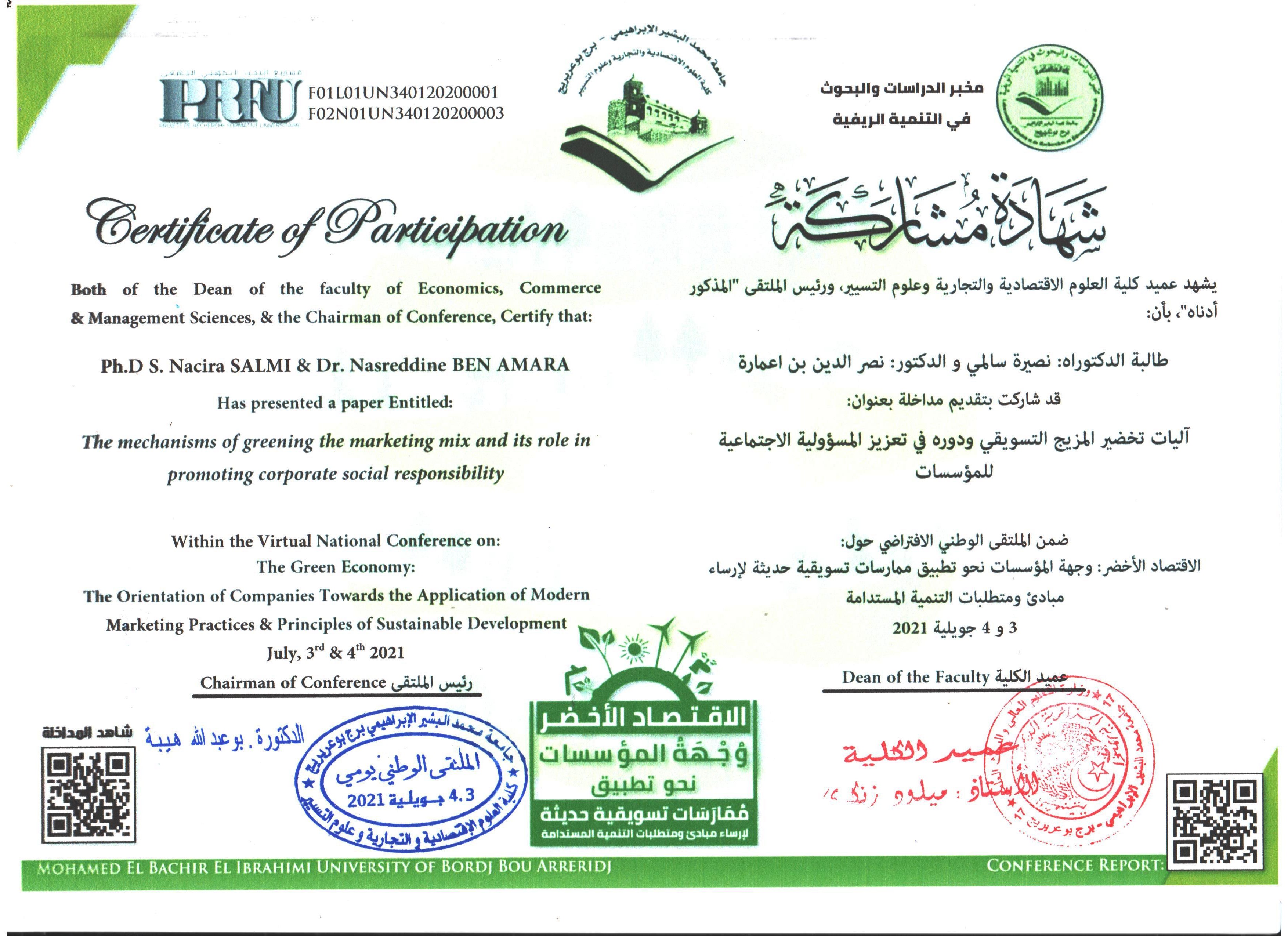 M. BENAMARA Nasreddine, (2021), "آليات تخضير المزيج التسويقي ودوره في تعزيز المسؤولية الاجتماعية للمؤسسات", [national] الاقتصاد الأخضر وجهة المؤسسات نحو تطبيق ممارسات تسويقية حديثة لارساء مبادئ ومتطلبات التنمية المستدامة , جامعة برج بوعريريج