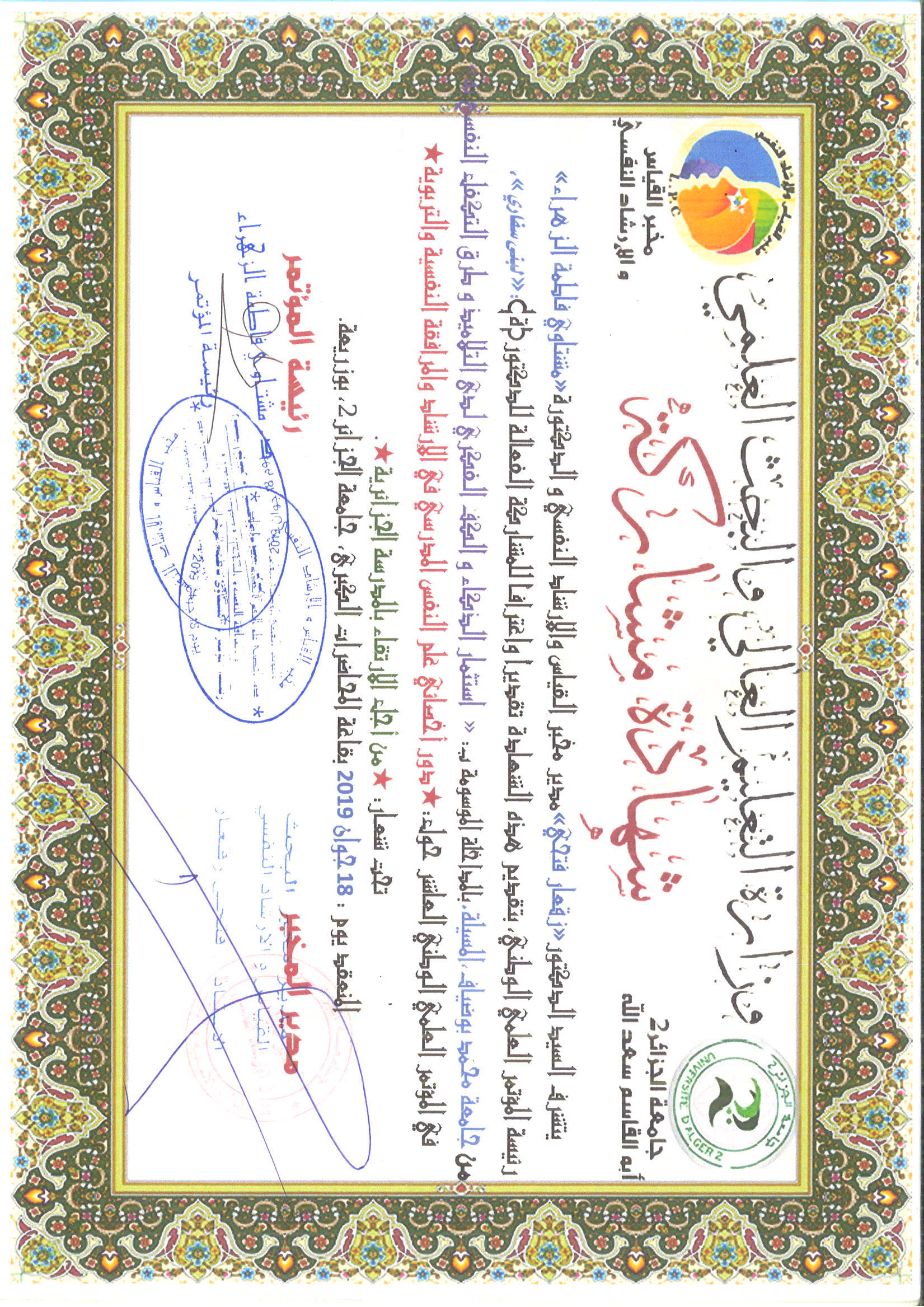 M. SEFFARI Loubna, (2023-07-03), "Psymed المركز الرقمي للاستشارات و المرافقة الطبية و النفسية", [national] university of M'sila