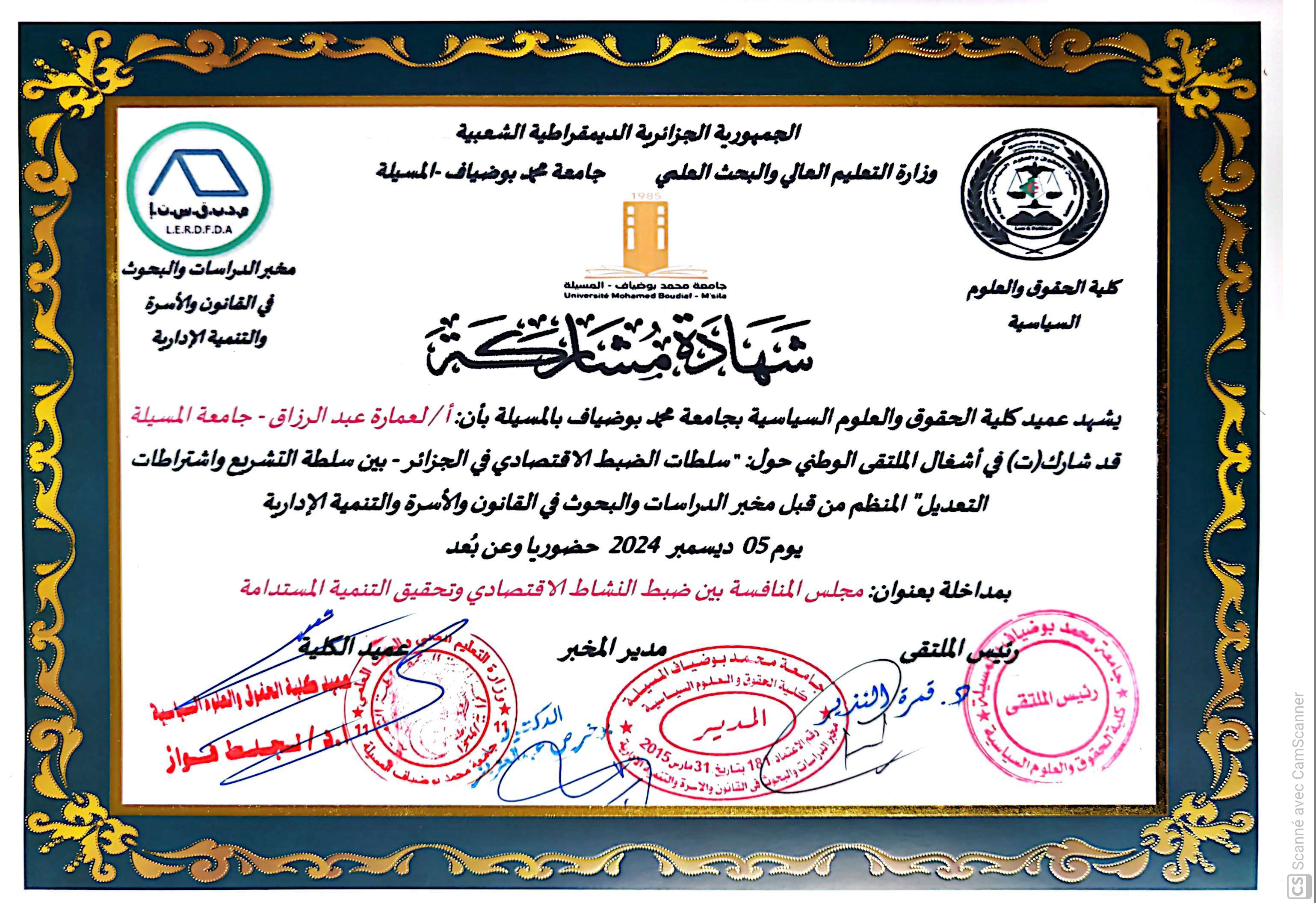 M. LAMARA Abderrazak, (2024-12-05), "مجلس المنافسة بين ضبط النشاط الإقتصادي وتحقيق التنمية المستدامة", [national] سلطات الضبط الاقتصادي في الجزائر , جامعة المسيلة