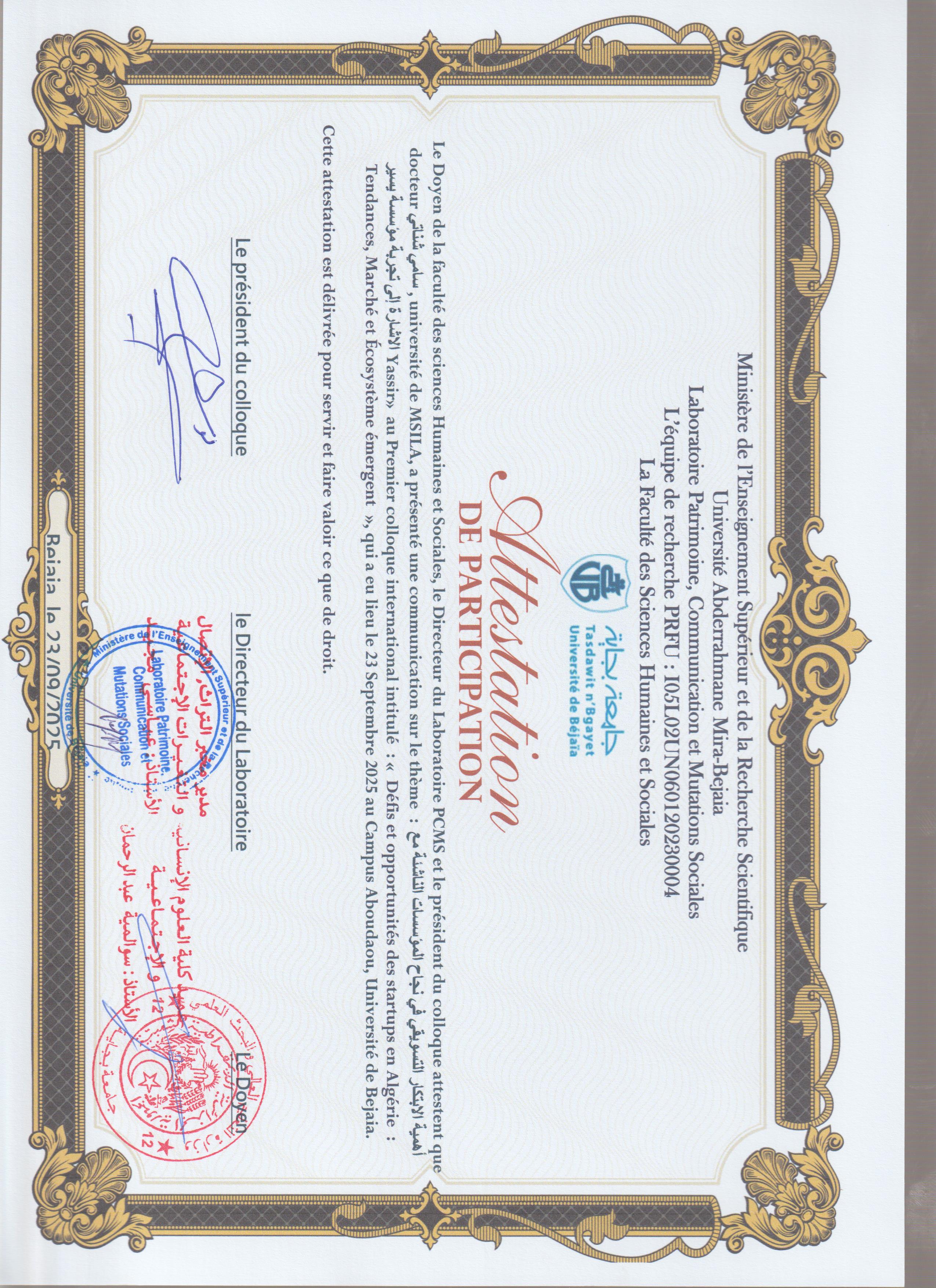 M. CHENATI Sami, (2025-09-23), "أهمية الابتكار في نجاح المؤسسات الناشئة مع الاشارة لتجربة مؤسسة يسير", [international] Défis et opportunités des startups en Algérie: tendances, marché et écosystème émergent , جامعة بجاية