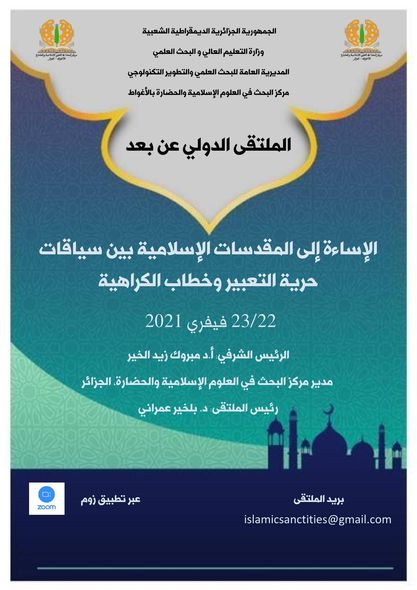 M. ATTABI Djamel, (2021-12-29), "المقدساات الدينية و مكانتها في الديانات السماوية", [international] الاساءة الى المقدسات الاسلامية بين سياقات حرية التعبير ة خطاب الكراهية , الاغواط