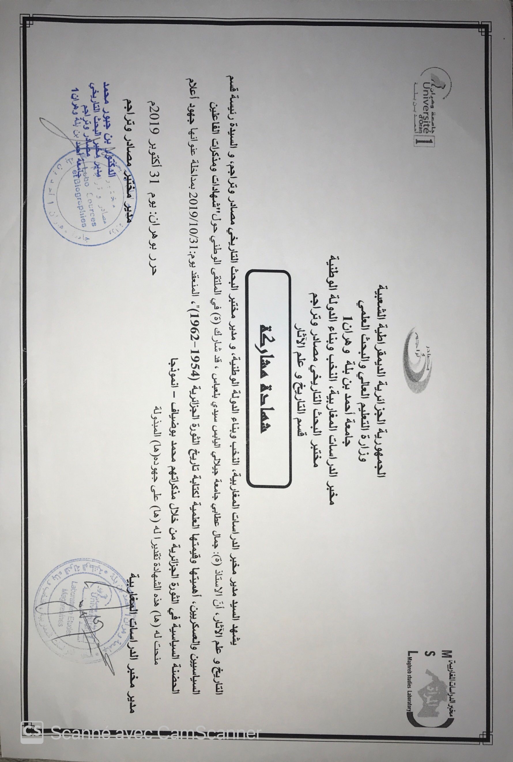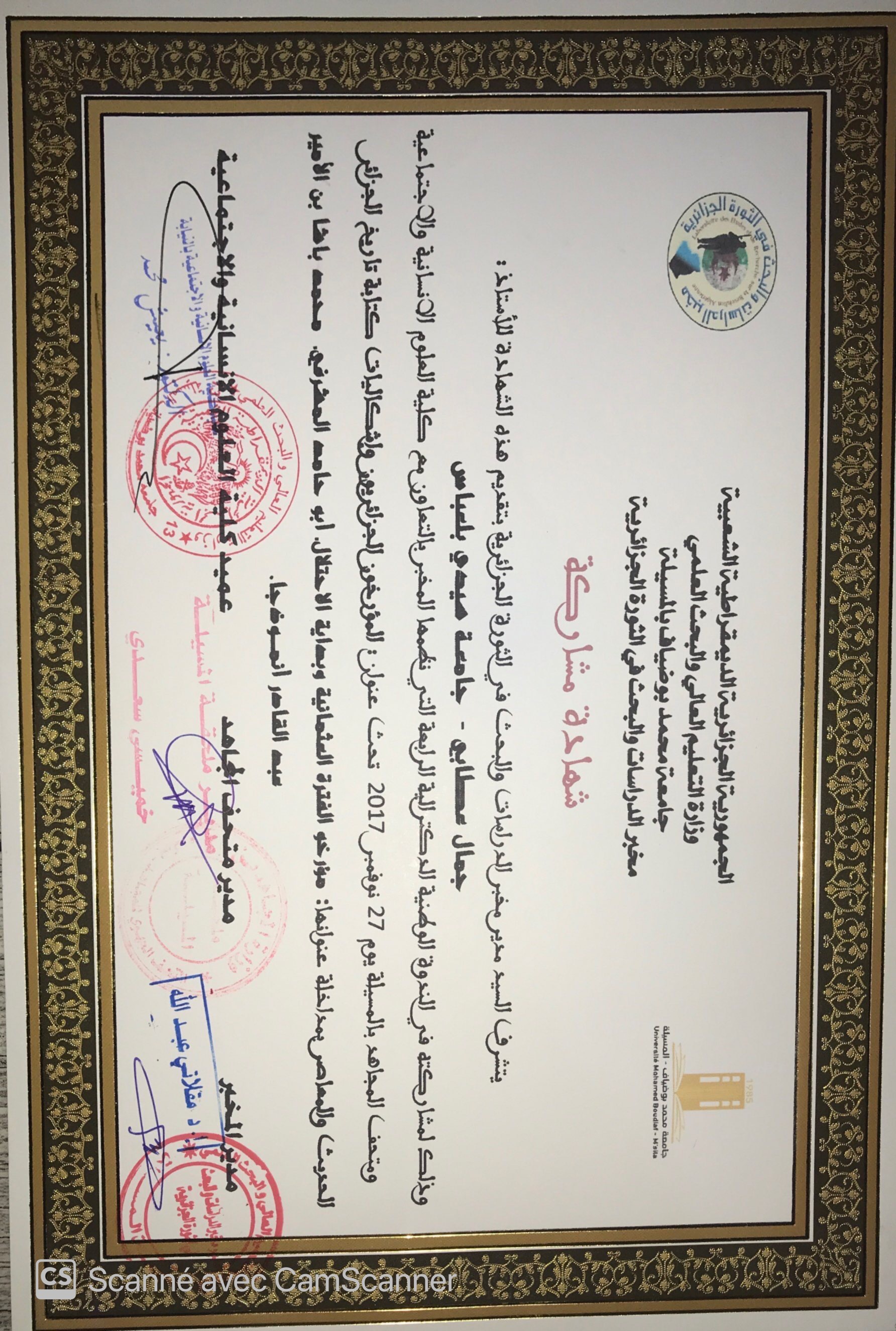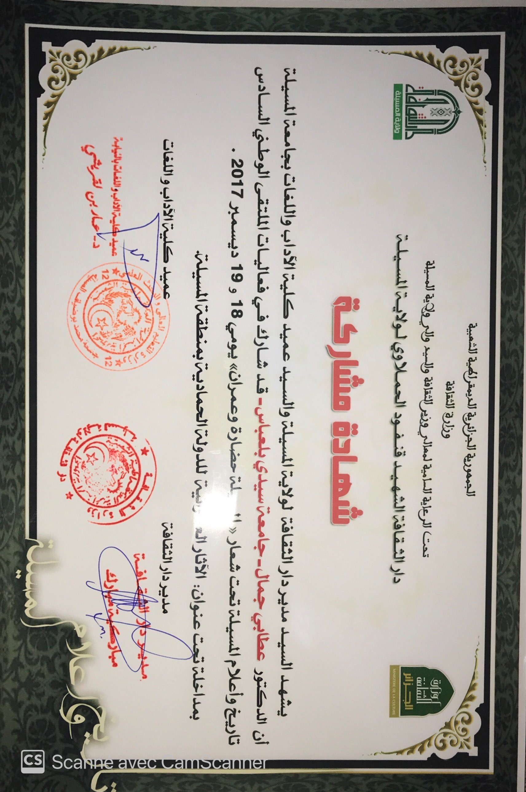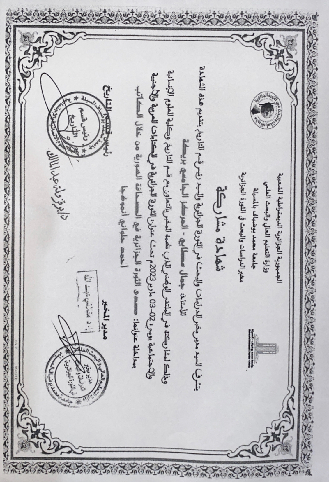M. ATTABI Djamel, (2021-05-07), "قلعة بني حماد ارثها تاريخي و دورها الحضاري", [international] المؤتمر الدولي حول التراث و الذاكرة معمار وتاريخ وحضارة , وهران