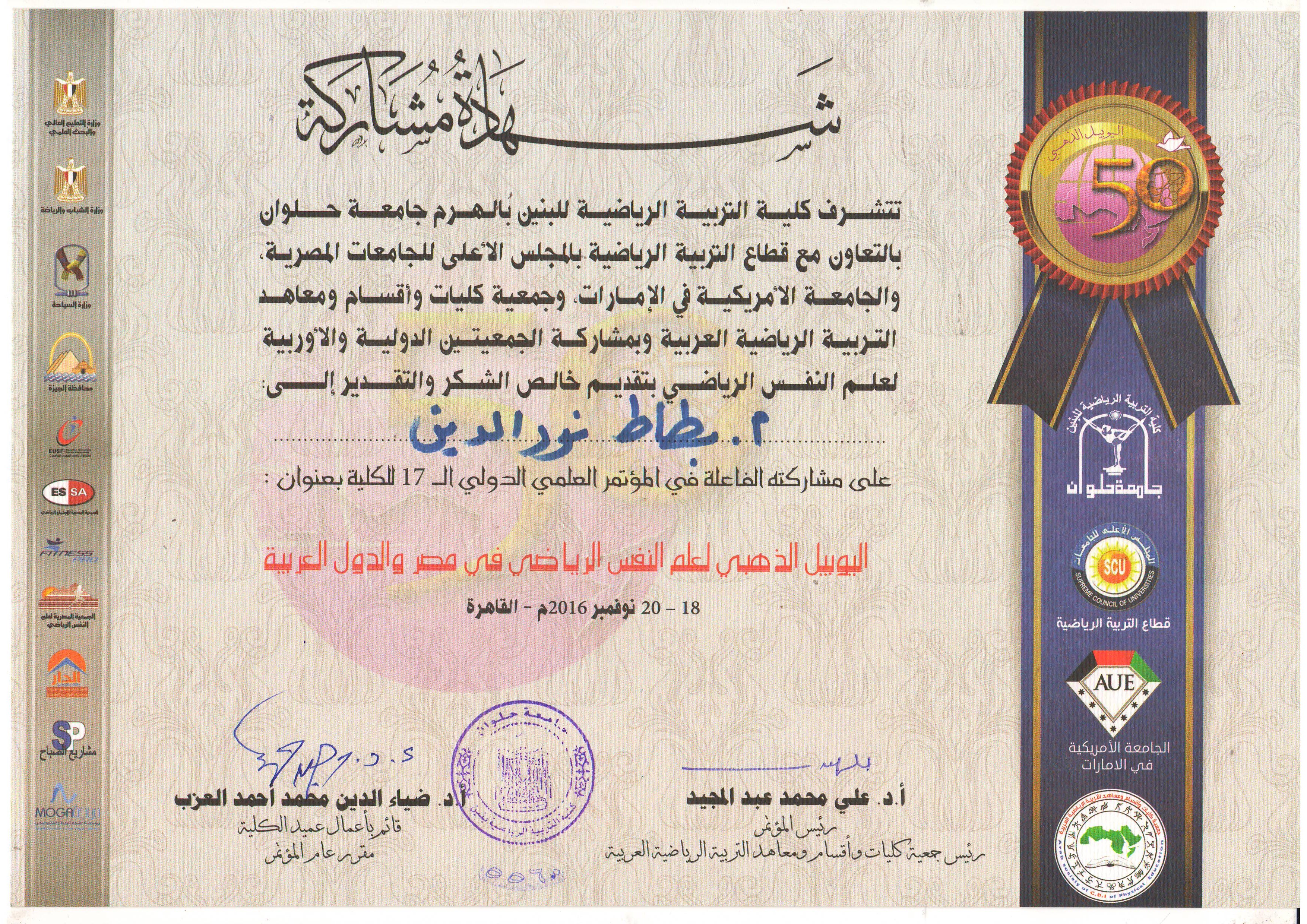 M. BETAT Noureddine, (2016), "العنف في الملاعب الجزائرية", [international] اليوبيل الذهبي لعلم النفس الرياضي في مصر و الدول العربية , جامعة حلوان- مصر