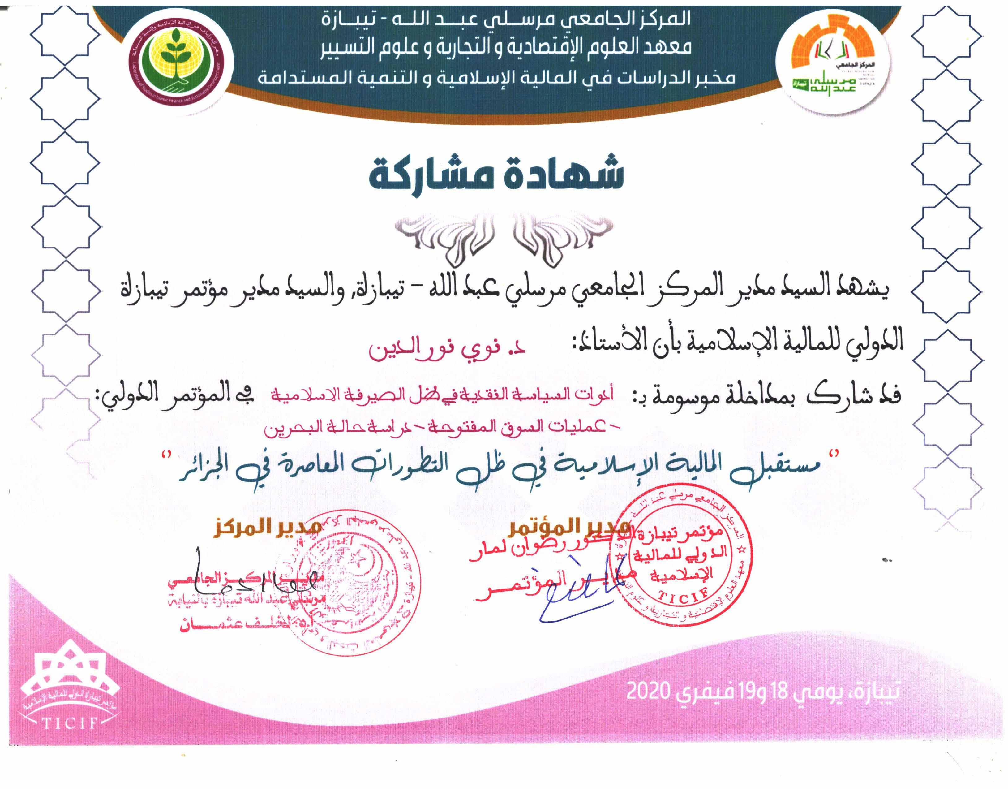 M. NOUI Noureddine, (2020), "أدوات السياسة النقدية في ظل الصيرفة الاسلامية – عمليات السوق المفتوحة – دراسة حالة البحرين", [national] المالية الاسلامية , جامعة تيبازة