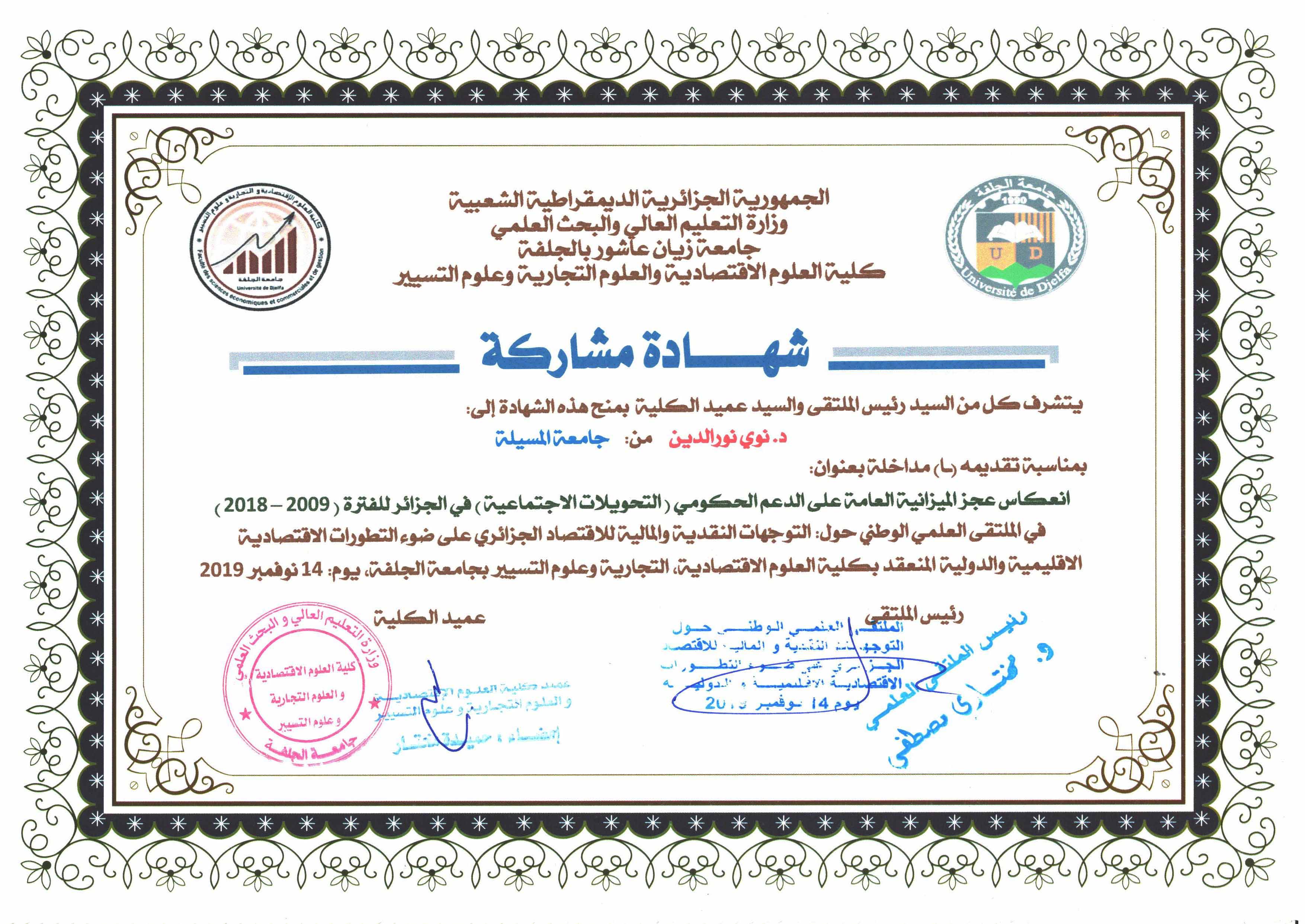 M. NOUI Noureddine, (2019), "انعكاس عجز الميزانية العامة على الدعم الحكومي ( التحويلات الاجتماعية ) في الجزائر للفترة ( 2009 – 2018 )", [national] التوجهات النقدية والمالية في الجزائو , جامعة الجلفة