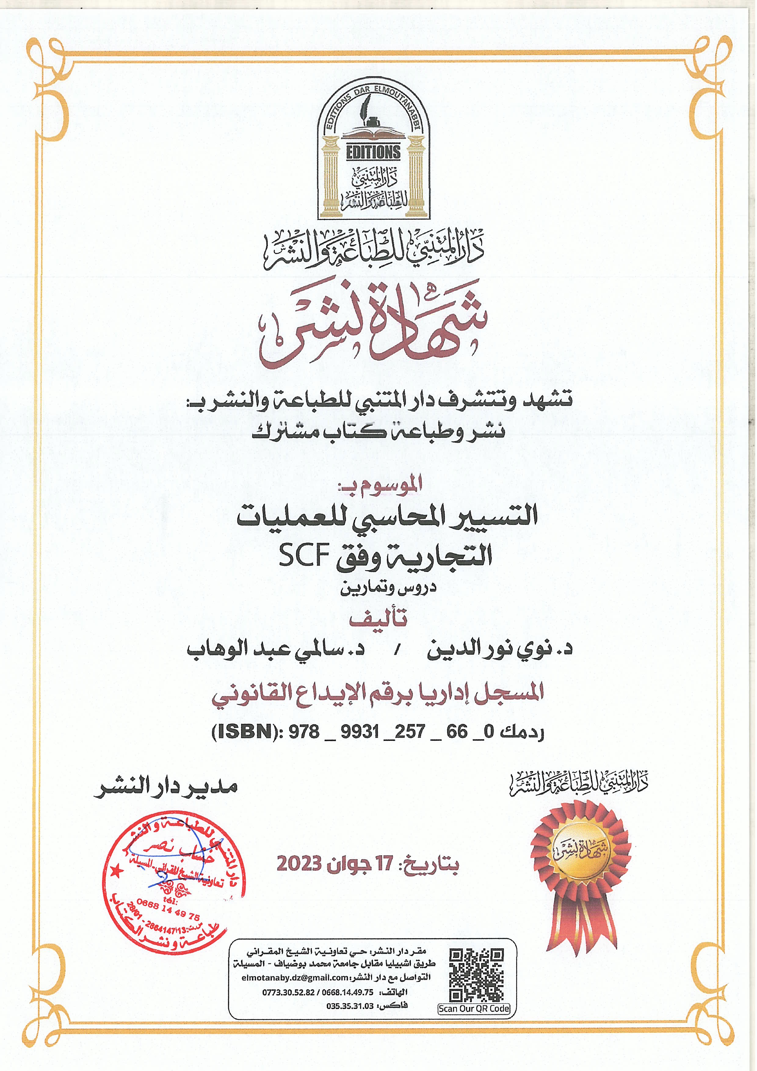 M. NOUI Noureddine, (2023-06-17), "التسيير المحاسبي للعمليات التجارية", [national] , دار المتنبي
