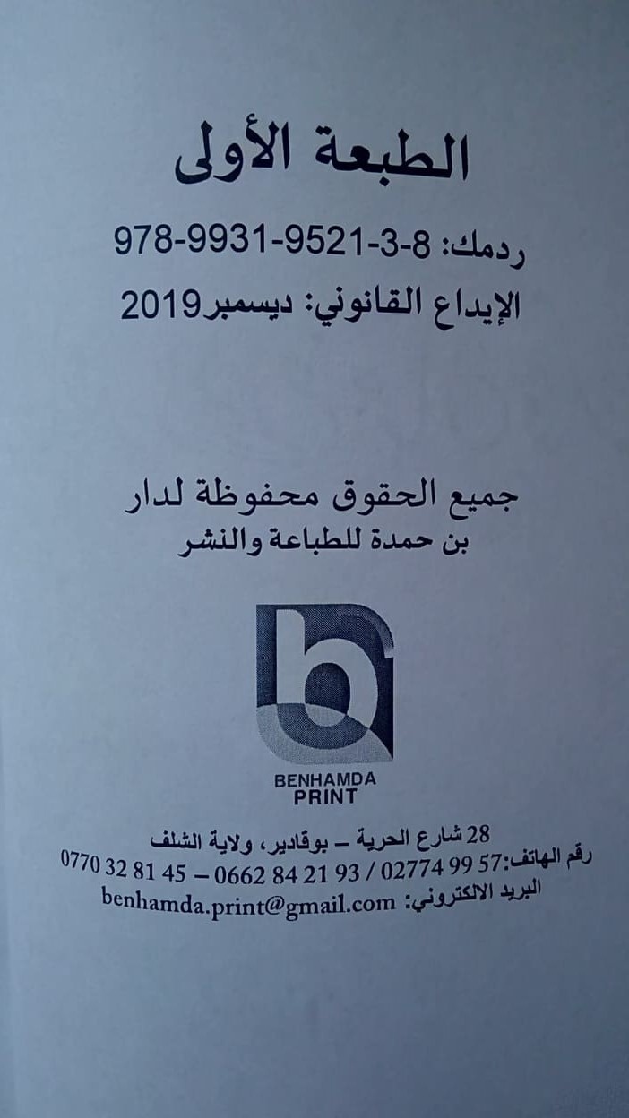 M. BOUDERBA. Omar, جمال قندل, , (2019), "دراسات تاريخية مهداة إلى المجاهد المؤرخ جمال قنان", [national] , دار بن حمدة للطباعة والنشر-بوقادير ولاية الشلف-الجمهورية الجزائرية
