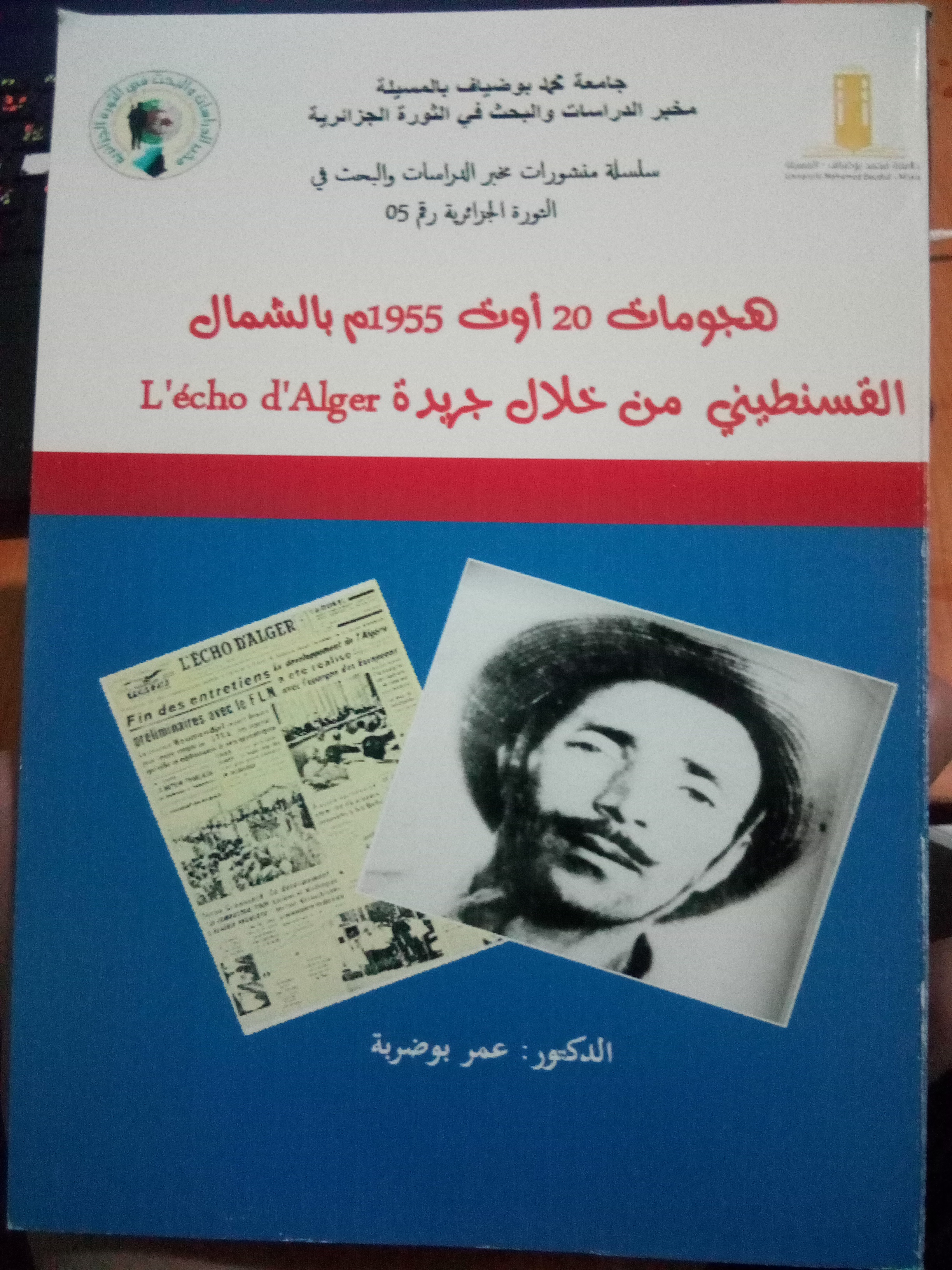 M. BOUDERBA. Omar, (2018), "هجومات 20 أوت 1955 بالشمال القسنطيني من خلال جريدة L’Echo d’Alger", [national] , منشورات مخبر الدراسات والبحث في الثورة الجزائرية، جامعة محمد بوضياف بالمسيلة،2018