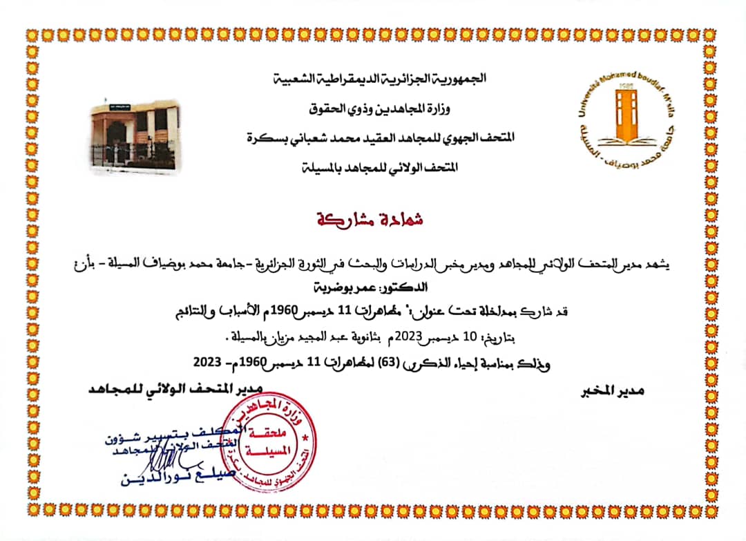 M. BOUDERBA. Omar, (2023-12-10), "مظاهرات 11 ديمسبر 1960", [national] مظاهرات 11 ديمسبر 1960 , مخبر الدراسات+ متحف المجاهد بالمسيلة
