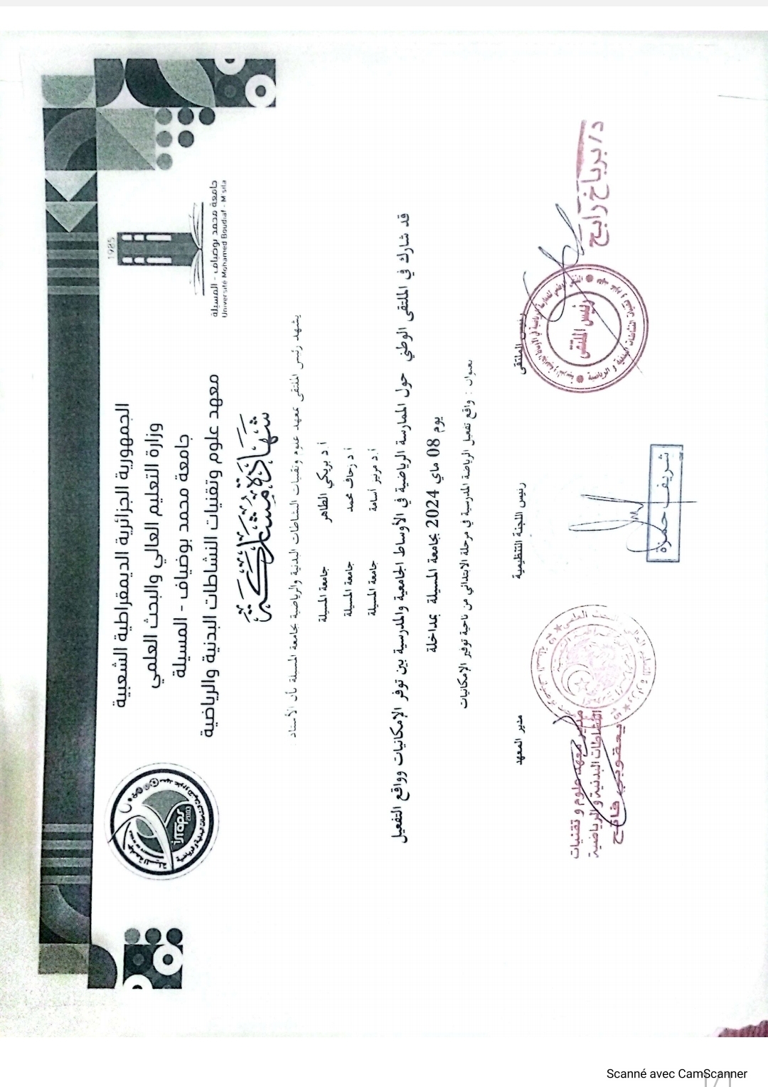 M. MERNIZ Oussama, (2022), "التظاهرة الرياضية لذوي الهمم", [national] التظاهرة الرياضية لذوي الهمم , جامعة المسيلة