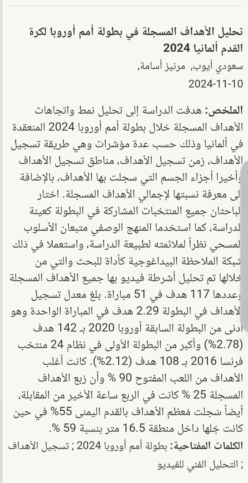 M. MERNIZ Oussama, (2025-02-04), "تحليل الأهداف المسجلة في كأس أمم أروبا المانيا2024", [national] مجلة التحدي , جامعة ام البواقي
