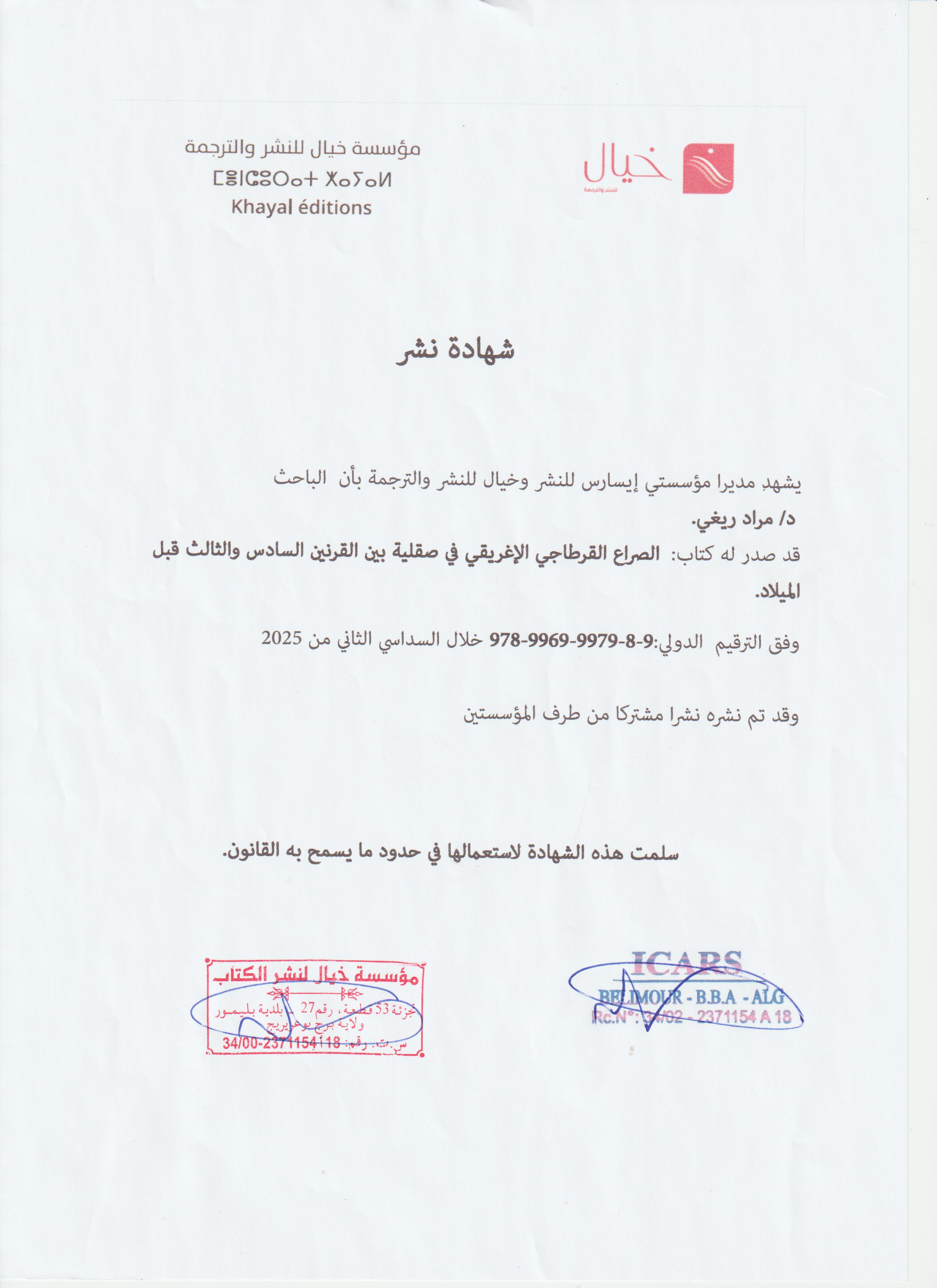 M. RIGHI Mourad, (2025-08-10), "الصراع القرطاجي الإغريقي في صقلية بين القرنين السادس والثالث قبل الميلاد", [national] , مؤسسة خيال للنشر والترجمة- ICARS