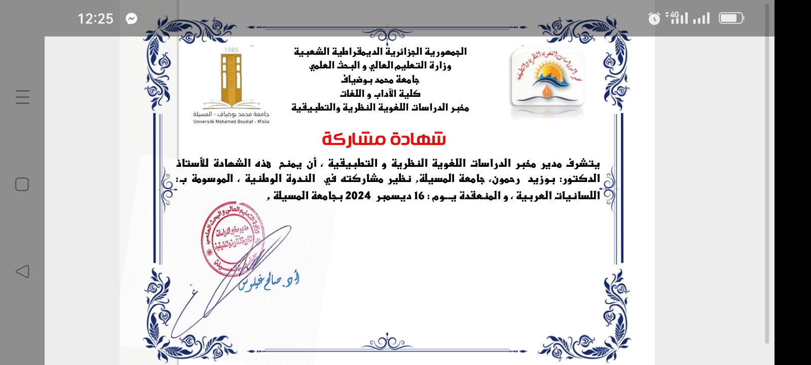 M. RAHMOUNE Bouzid, (2024-12-16), "اللسانيات العربية", [national] اللسانيات العربية , مخبر الدراسات اللغوية النظرية والتطبيقية