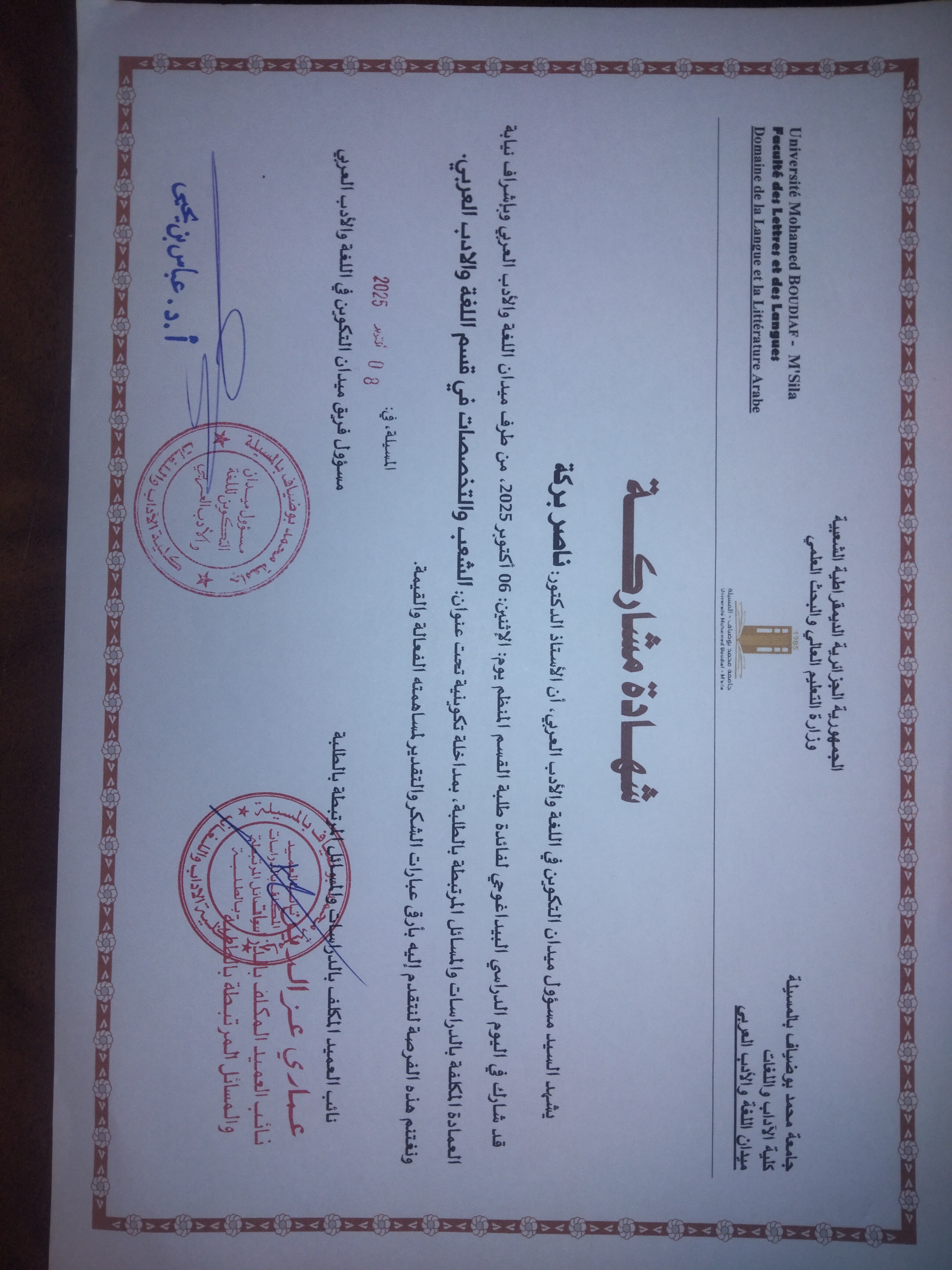 M. BARKA Nacer, (2025-10-06), "الشعب والتخصصات في قسم اللغة والأدب العربي", [national] الشعب والتخصصات في قسم اللغة والأدب العربي , جلمعة المسيلة