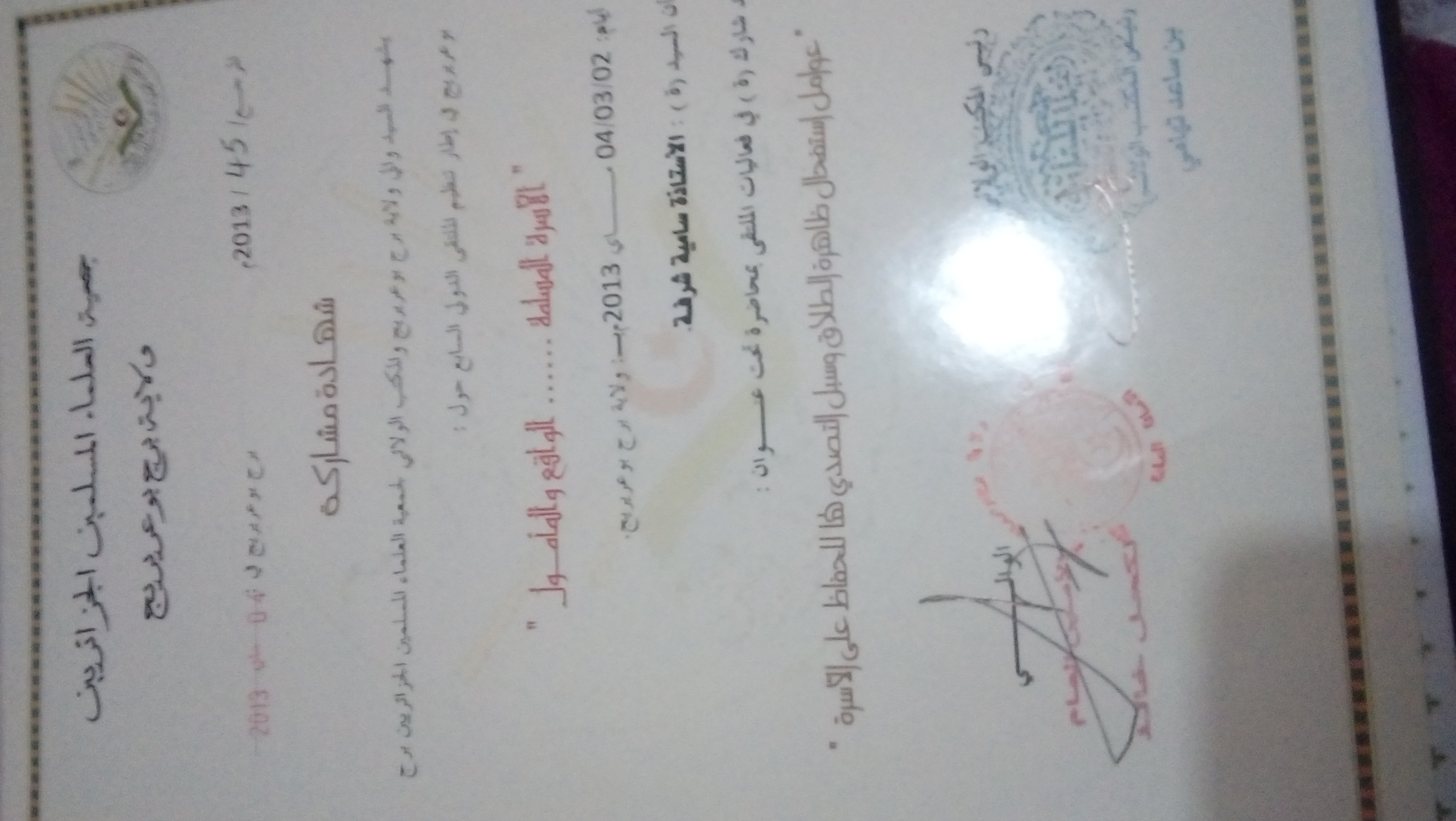 M. SAMIA Cheurfa, (2018-10-11), "رؤيو شرعية في علاج اختلال الميزانية", [national] مجلة الشهاب , جامعة حمة الوادي