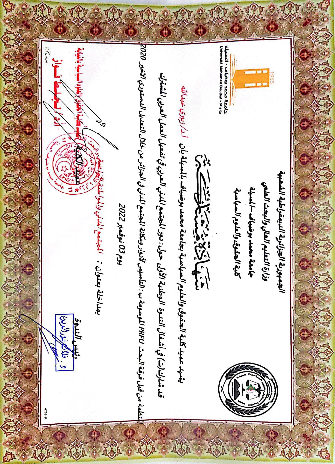 M. ABDALLAH Zoubiri, (2024-02-03), "الدولــة والمجتمع الـمدني 2023 /2024", [national] جامعة محمد بوضياف المسيلة
