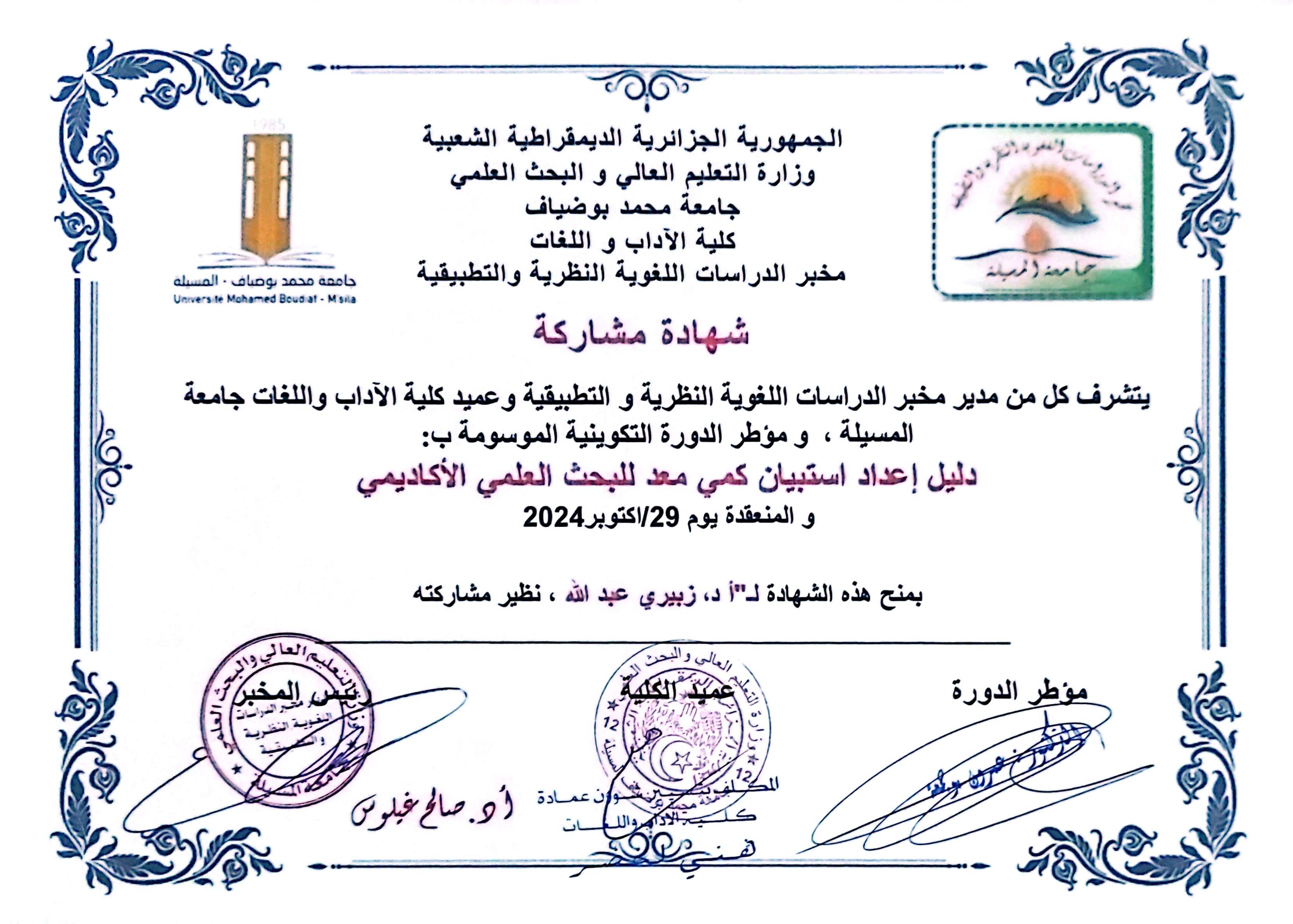 M. ABDALLAH Zoubiri, (2025-02-01), "2024. 2025 الهوية والمواطنة", [national] جامعة محمد بوضياف المسيلة