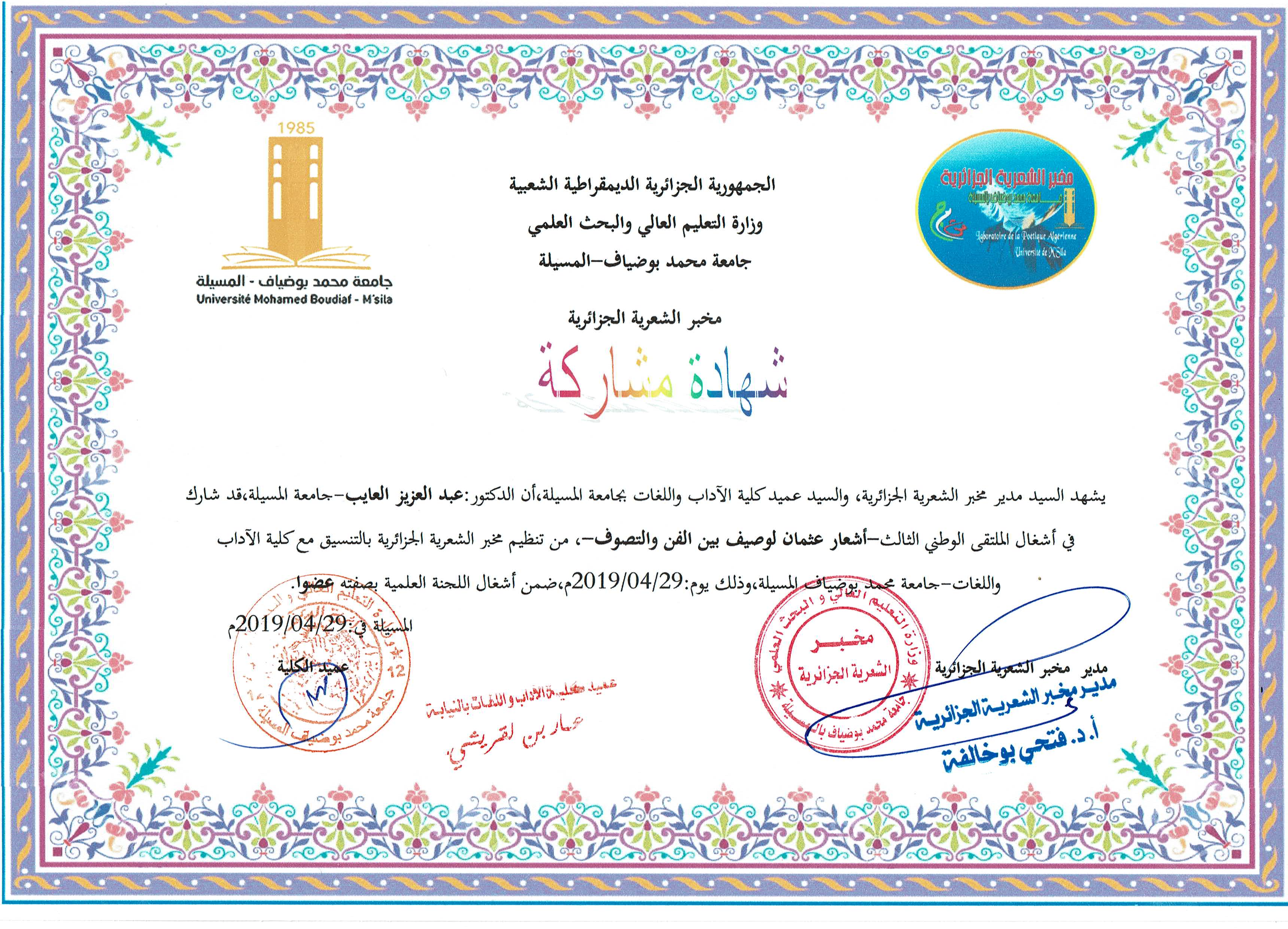 M. LAIEB Abdelaziz, (2019), "أشعار عثمان لوصيف بين الفن و التصوف", [national] أشعار عثمان لوصيف بين الفن و التصوف , جامعة المسيلة