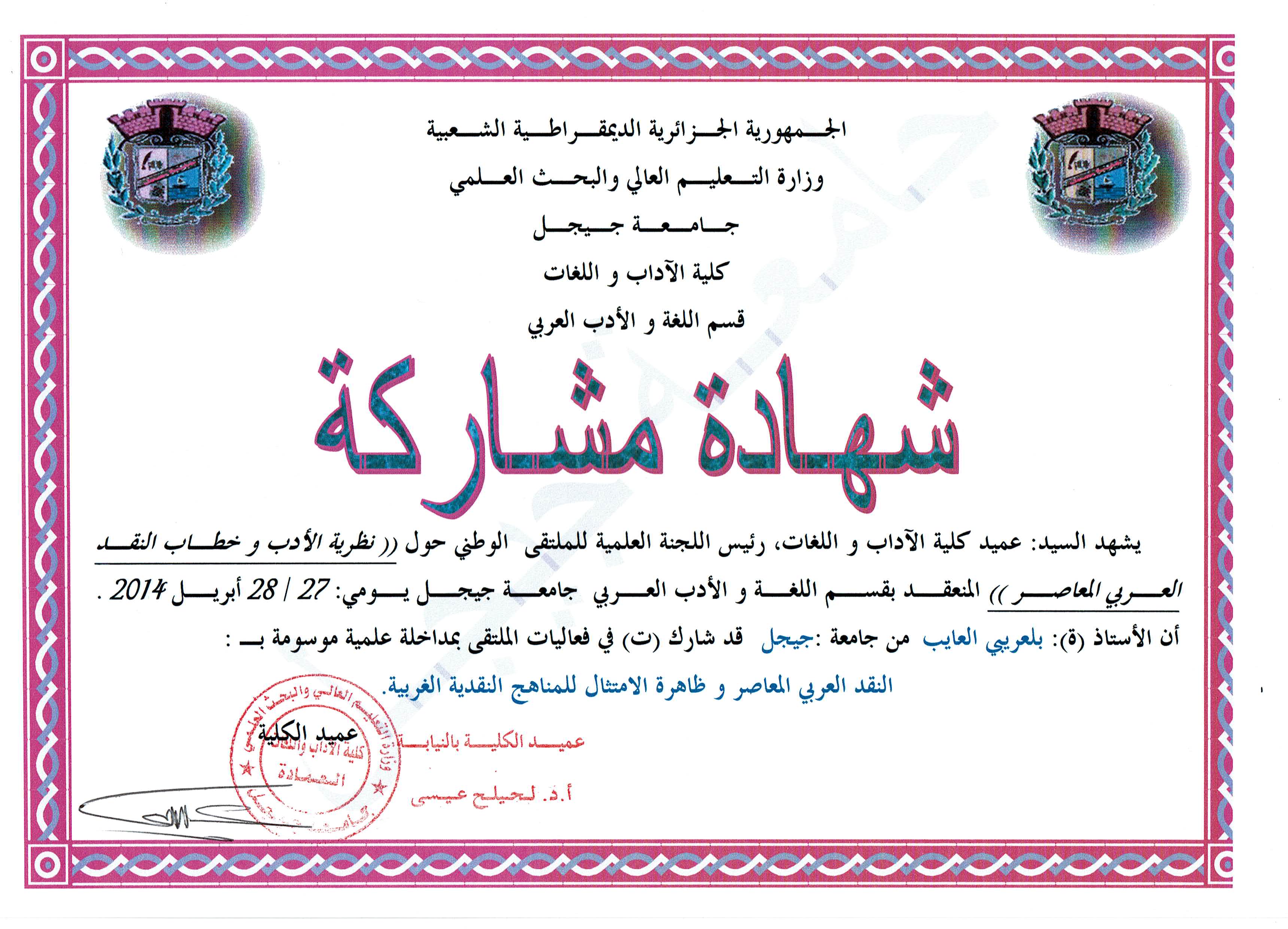 M. LAIEB Abdelaziz, (2014), "النقد العربي المعاصر و ظاهرة الامتثال للمناهج الغربية", [national] نظرية الأدب و خطاب النقد العربي المعاصر , جامعة جيجل