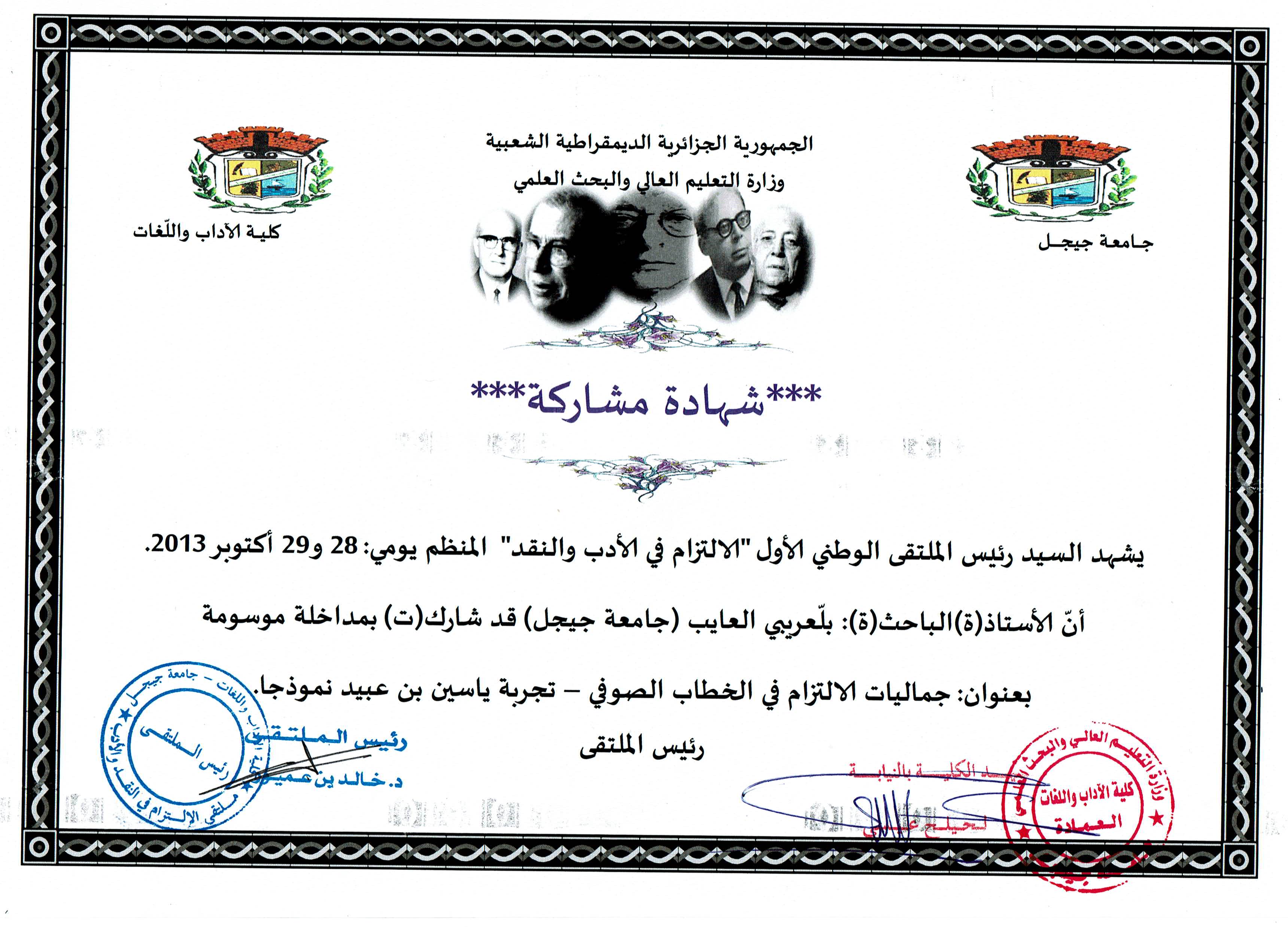 M. LAIEB Abdelaziz, (2013), "جماليات الالتزام في الخطاب الصوفي -تجربة ياسين بن عبيد نموذجا-", [national] الالتزام في الأدب و النقد , جامعة جيجل