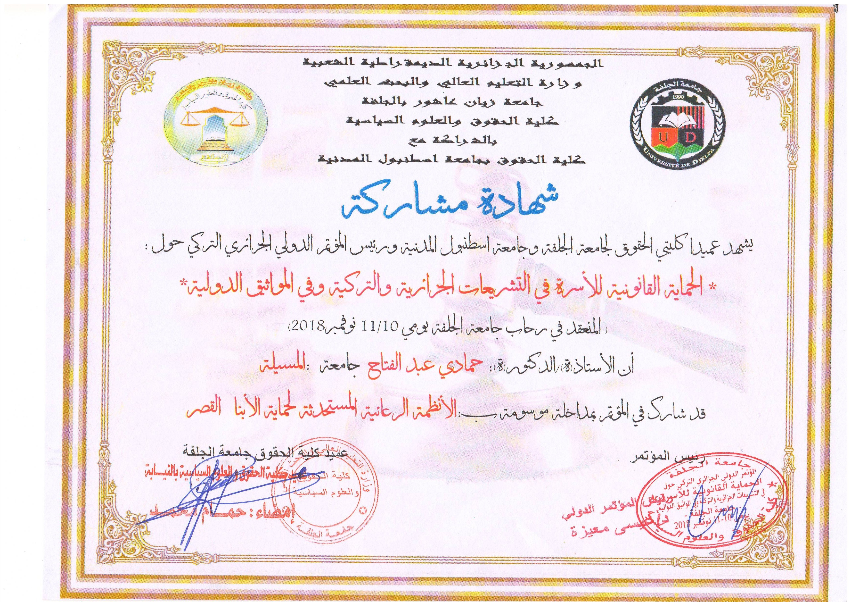 M. HAMADI Abdelfateh, (2018), "الأنظمة الرعائية المستحدثة لحماية الأبناء القصر", [international] الحماية القانونية للأسرة في التشريعات الجزائرية والتركية , جامعة الجلفة