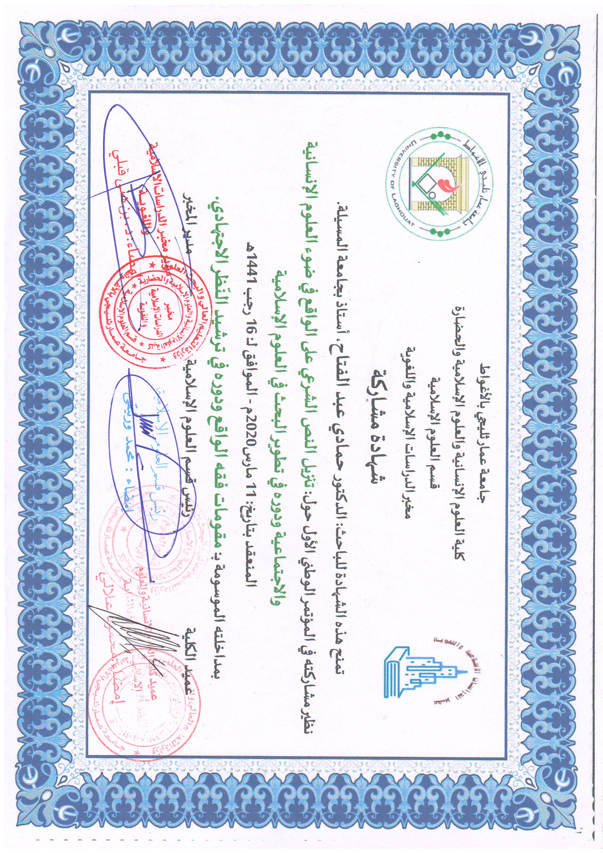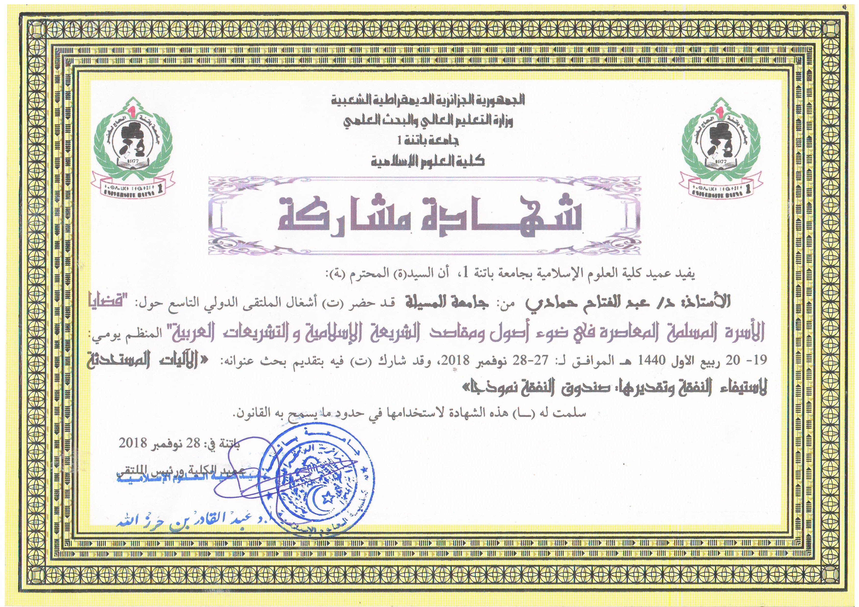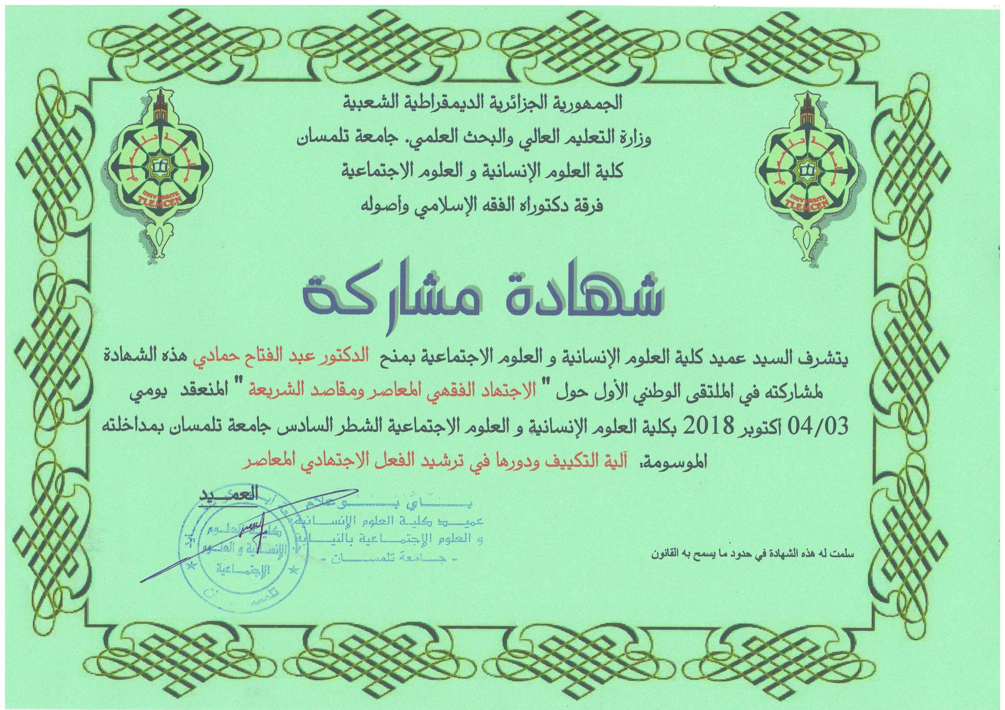 M. HAMADI Abdelfateh, (2018), "آلية التكييف ودورها في ترشيد الفعل الاجتهادي المعاصر", [national] الاجتهاد الفقهي المعاصر ومقاصد الشريعة , جامعة تلمسان